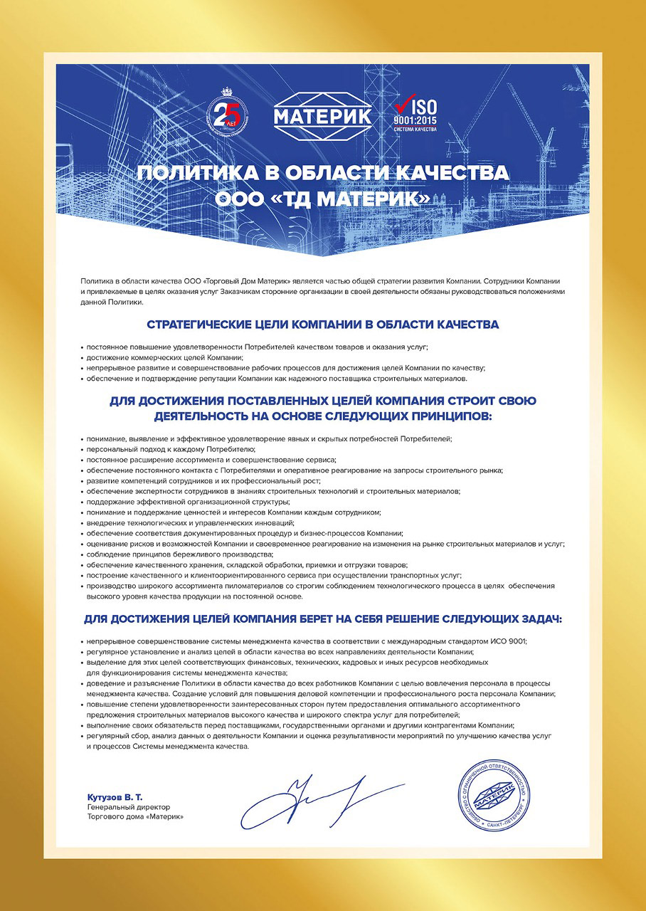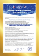Наличие сертификата подразумевает, что деятельность компании в области качества абсолютно прозрачна, а все процессы, определяющие качество выпускаемой продукции или оказываемых услуг, направлены на постоянное совершенствование и удовлетворение нужд потребителей.