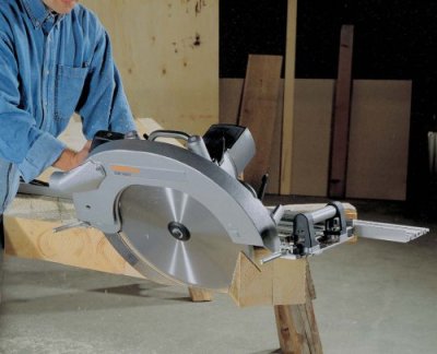 Дисковые пилы отличаются, прежде всего, размерами пильного диска. Самые популярные пилы - с размерами дисков от 160мм до 190мм. Чем больше диск, тем глубже пропил он может сделать. Диск размером 160 мм обеспечивает пропил на глубину до 52мм, соответственно, такой пилой можно пилить все строительные плиты (фанеру, OSB, ДСП) и доски толщиной до 50мм. Если предполагается пилить более толстые материалы, либо требуется пилить доски 50мм под углом (пример - на фото ниже),