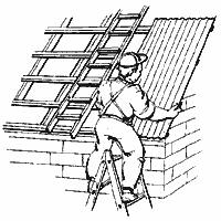 | 8. Начинайте крепить листы с противоположного превалирующим ветрам края крыши. Начинайте второй ряд листов с половины листа для того, чтобы на угловом стыке был нахлест в 3, а не в 4 листа. Это облегчает укладку. |