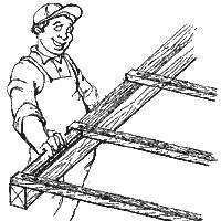 | 4. Бруски обрешетки должны быть прибиты к стропилам на правильных расстояниях по осям. Пользуйтесь деревянным "интервалом" для поддержания параллельности обрешетин к карнизу. |