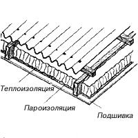 | 30. Наиболее часто встречающаяся конструкция кровли с использованием листов Ондулин. В качестве пароизоляции рекомендуем применять высококачественный подкладочный материал Ондутис. |