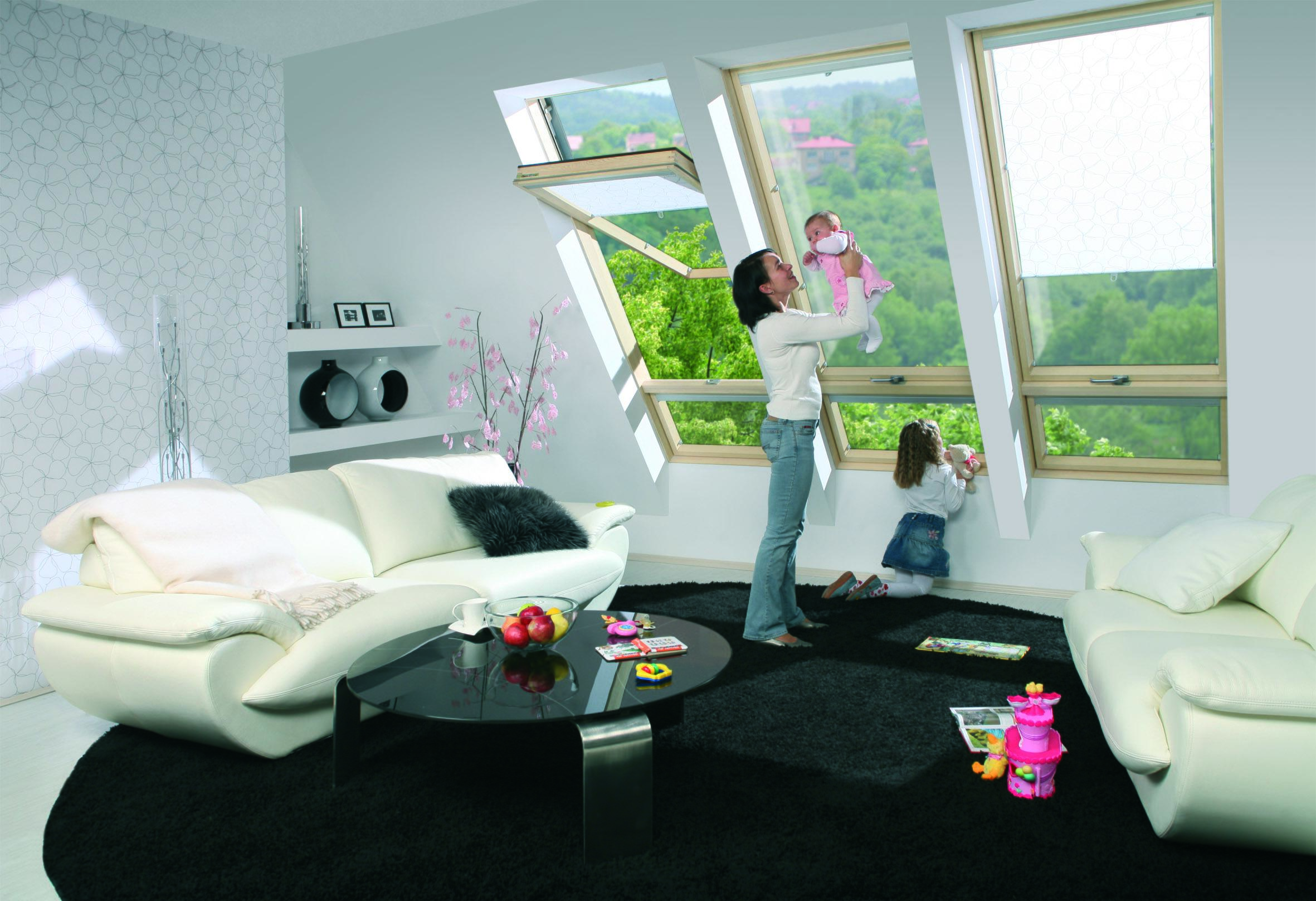 Совет: Располагать окно следует на расстоянии не менее 80-110 см от пола, ведь чем выше оно установлено, тем больше света дает. Важным преимуществом мансардных окон FAKRO является расположение ручки в нижней части окна, что позволяет устанавливать окно на высоту 110-170 см от уровня пола. Для обеспечения максимального обзора можно использовать высокие окна серии «Дуэт» или комбинации с карнизными окнами.