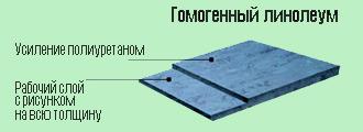 Гомогенный линолеум -это полимерный однослойный материал толщиной от 1,5 до 3 мм. На всю свою толщину пропитанный рисунком, благодаря этому рисунок никогда не сотрется ни при каких обстоятельствах, чаще всех остальных покрытий используется для помещений с повышенной проходимостью.