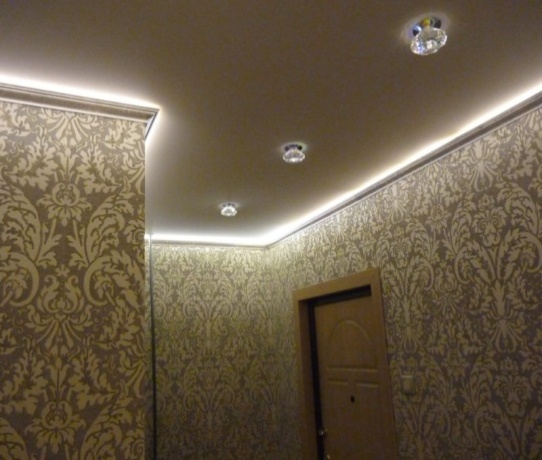 - Коллекция универсальных плинтусов может использоваться как для обычных, так и для натяжных потолков и светодиодной подсветки благодаря особой конструкции, связанной с увеличенным размером плинтуса по стене, а также наличием специальной полочки для приклеивания светодиодной подсветки.