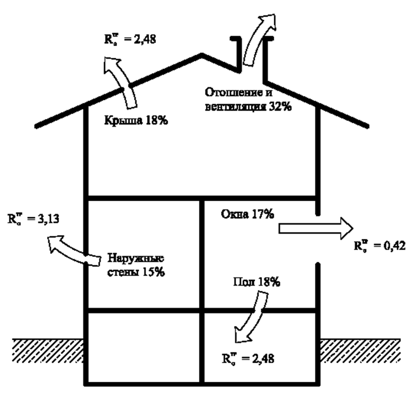 Рассмотрим схему теплопотерь всего дома.