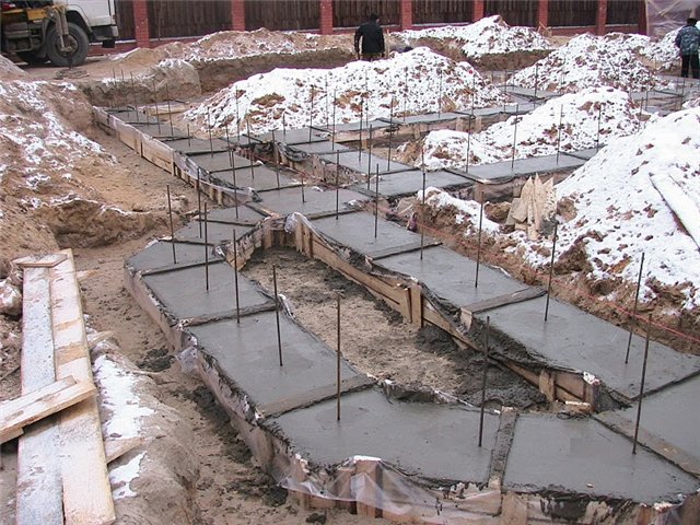 При минусовых температурах производят заливку фундаментов и стяжек, кладку стен из таких материалов, как кирпич, газо и пено блоков, монолитные конструкции. Также можно использовать метод несъемной опалубки и производить штукатурные работы.