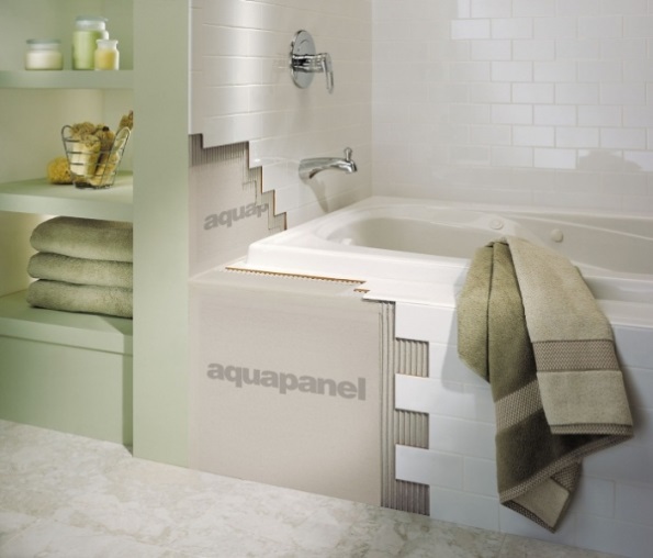 • Окончательная отделка. Поверхность, обшитая плитами АКВАПАНЕЛЬ, образует бесшовную поверхность, пригодную под различную отделку: облицовку керамической плиткой, окраску, декоративную штукатурку.