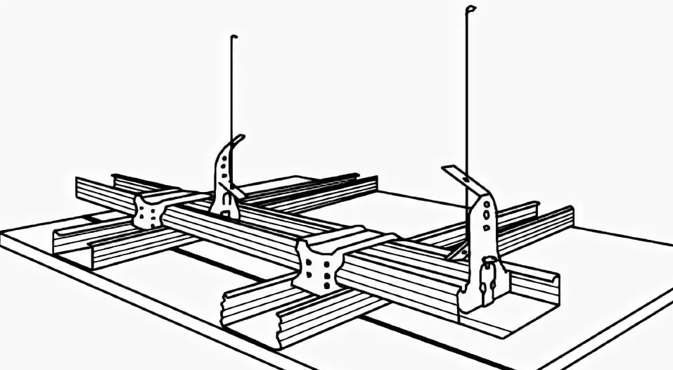 Монтаж потолочной конструкции с применением анкерного подвеса выполняется в помещениях с высокими потолками. В процессе монтажа можно регулировать положение профилей по высоте, т.е. задавать нужную высоту потолка.