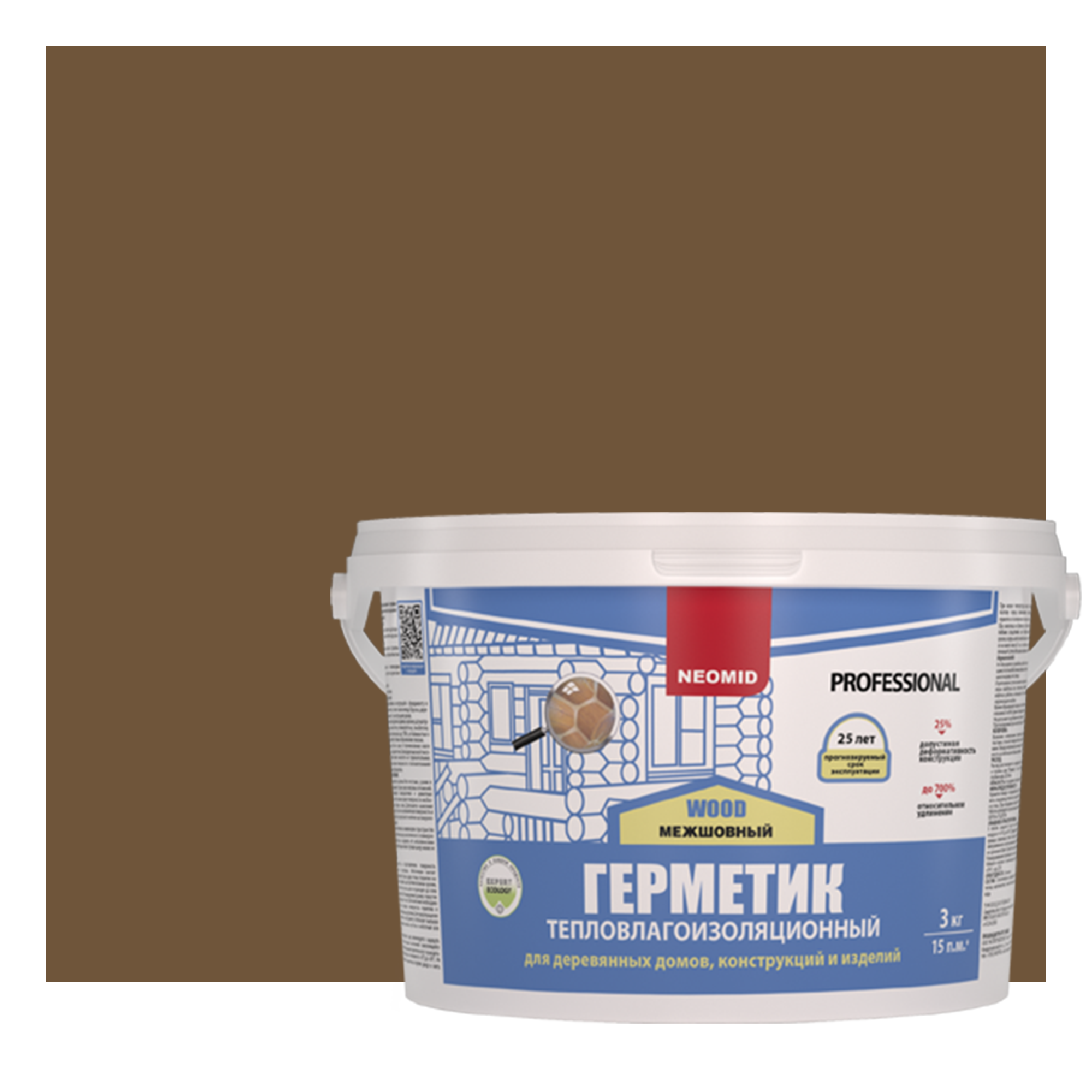 Герметик Neomid Wood Professional межшовный - предназначен для деревянных поверхностей, для заделки и долговременной герметизации.