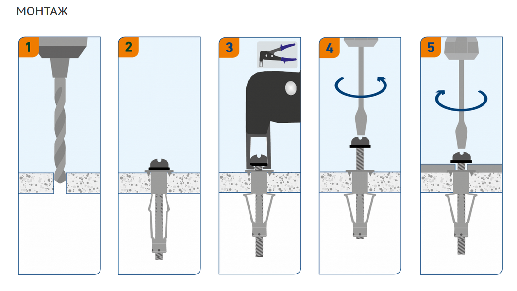 Затягивание и крепление анкера осуществляется при помощи отвертки или специального установочного инструмента.