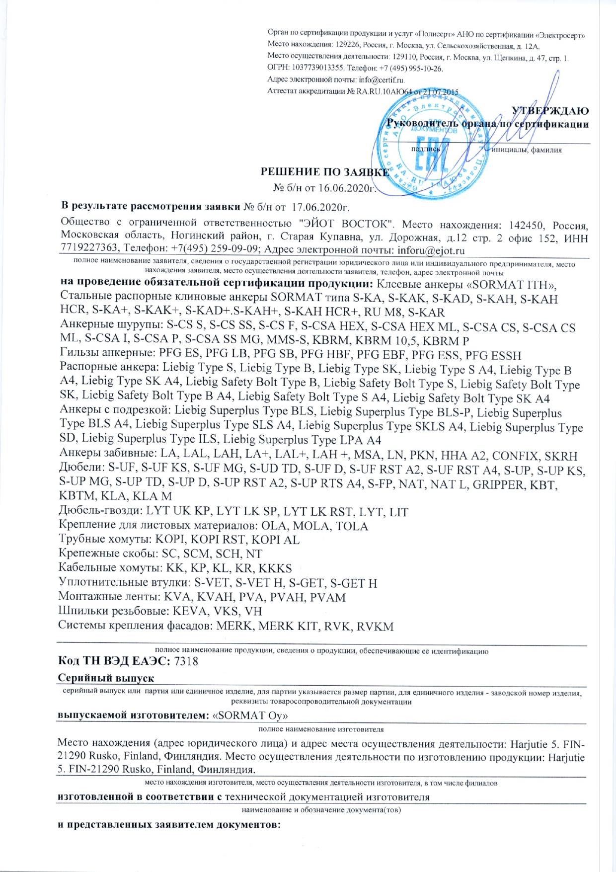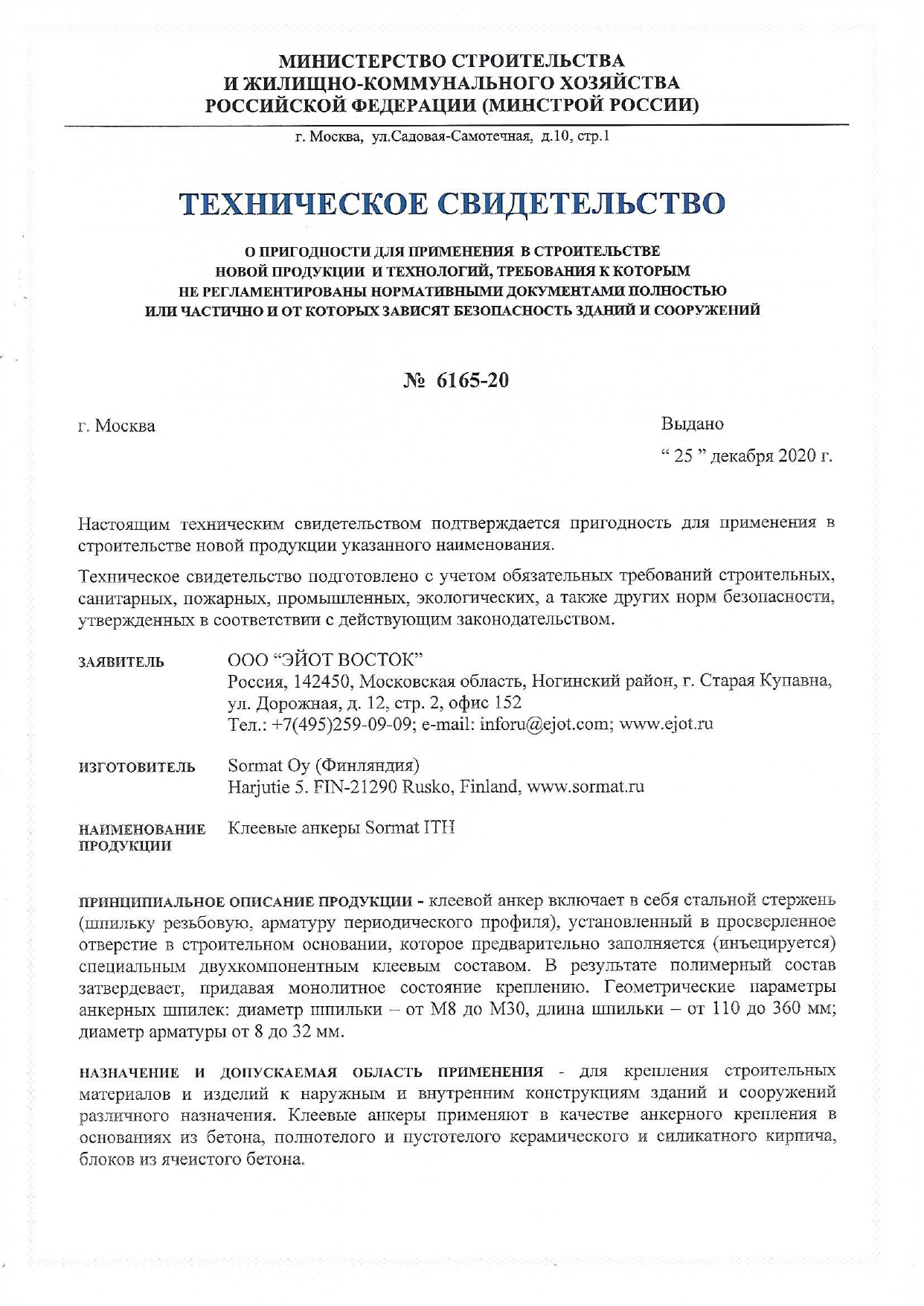 Химический анкер прошел испытания LEED, может применятся при температурах от -40 °C до +80 °C.
