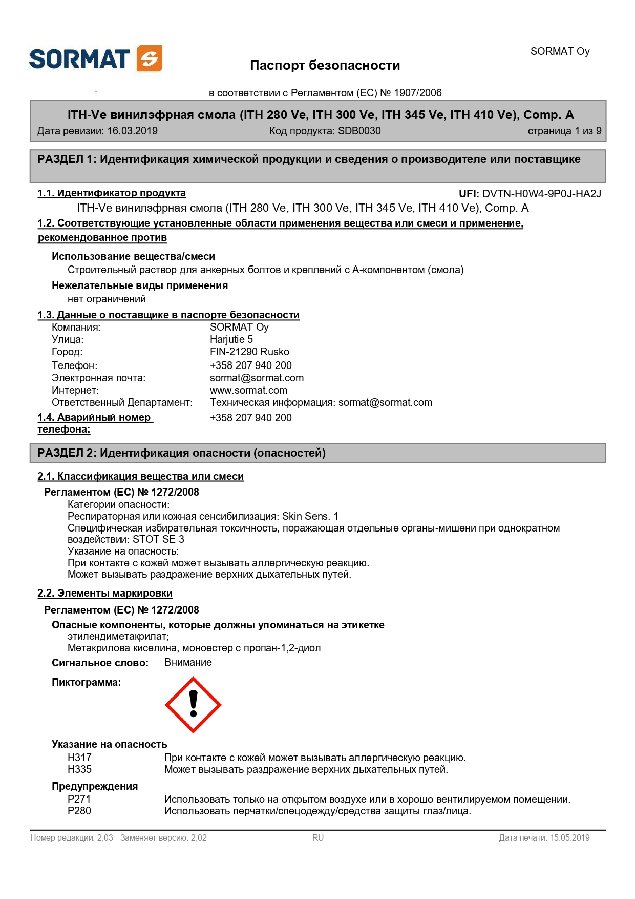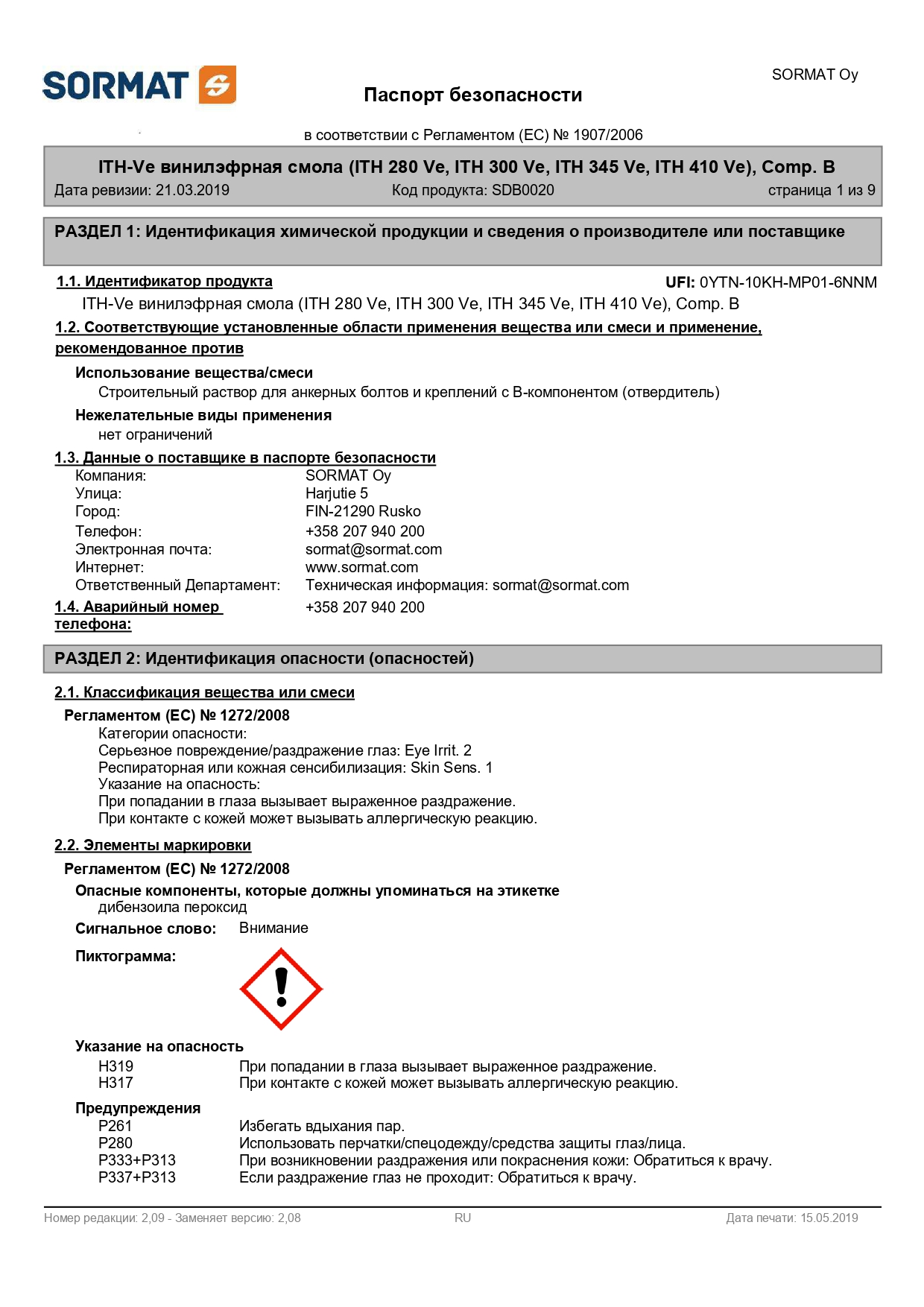 Анкер химический SORMAT полиэстеровая смола ITH 300 PE