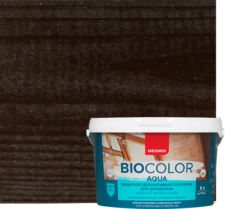 Декоративный антисептик Neomid Bio Color Aqua – деревозащитный декоративный состав на акриловой основе для высокоэффективной защиты и декоративной отделки деревянных поверхностей.