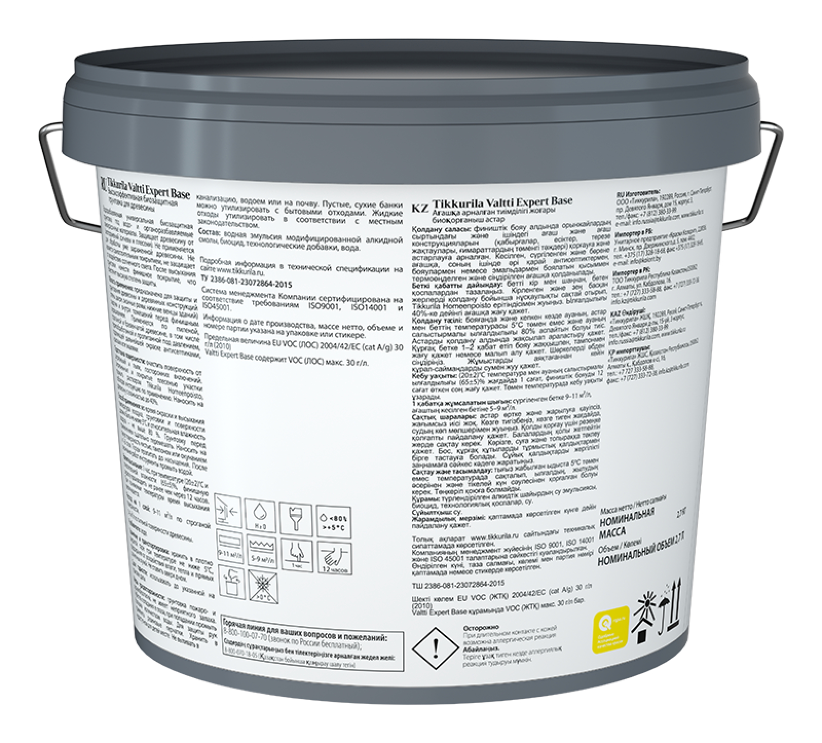 Окраска: Окрашиваемая поверхность должна быть сухой и чистой, влажность древесины должна быть менее 40%. Во время окраски и высыхания температура воздуха, грунтовки и поверхности должна быть не ниже +5°C и относительная влажность воздуха – не выше 80 %. Поверхность обработать грунтовкой «Valtti Expert Base» на возможно ранней стадии строительства. Грунтовку перед применением тщательно перемешать. Наносить на сухую поверхность кистью, тампоном или окунанием в 1-2 слоя. Торцы пропитать до насыщения. Финишную окраску произвести как можно быстрее, но не ранее, чем через 12 часов после грунтования. В случае, если окраска задерживается, грунтование рекомендуется повторить грунтовкой «Valtti Expert Base».