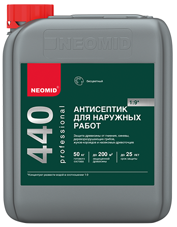 Необработанная древесина, под воздействием воздуха очень быстро гниет и теряет свой первоначальный вид. Уже через год конструкцию не отличить от постройки 10летней давности, чего можно избежать используя антисептик Неомид. Одной канистры хватит надолго, так как контрентрация для разбавления антисептика составляет 1:9 (а можно и больше), а образовавшаяся пленка надежно защищает древесину от повреждений и гнили. Легко быть профессионалом, используя Неомид!