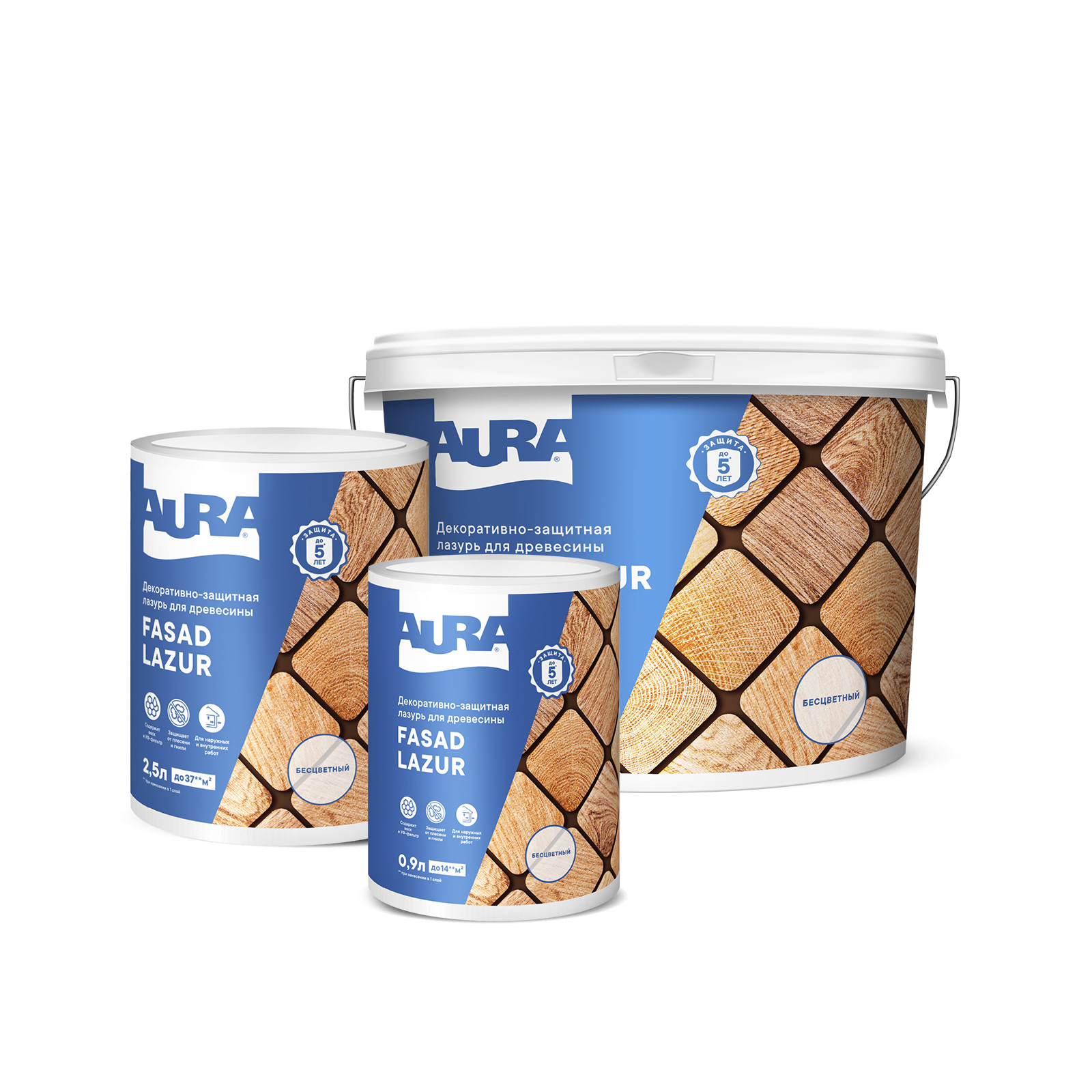 Для максимально эффективной защиты необходимо комплексное использование биозащитной грунтовки Aura Fasad Grund и лазури Aura Fasad Lazur, особенно для нижних венцов зданий. Бесцветную лазурь при применении снаружи рекомендуется использовать только в колерованном виде.