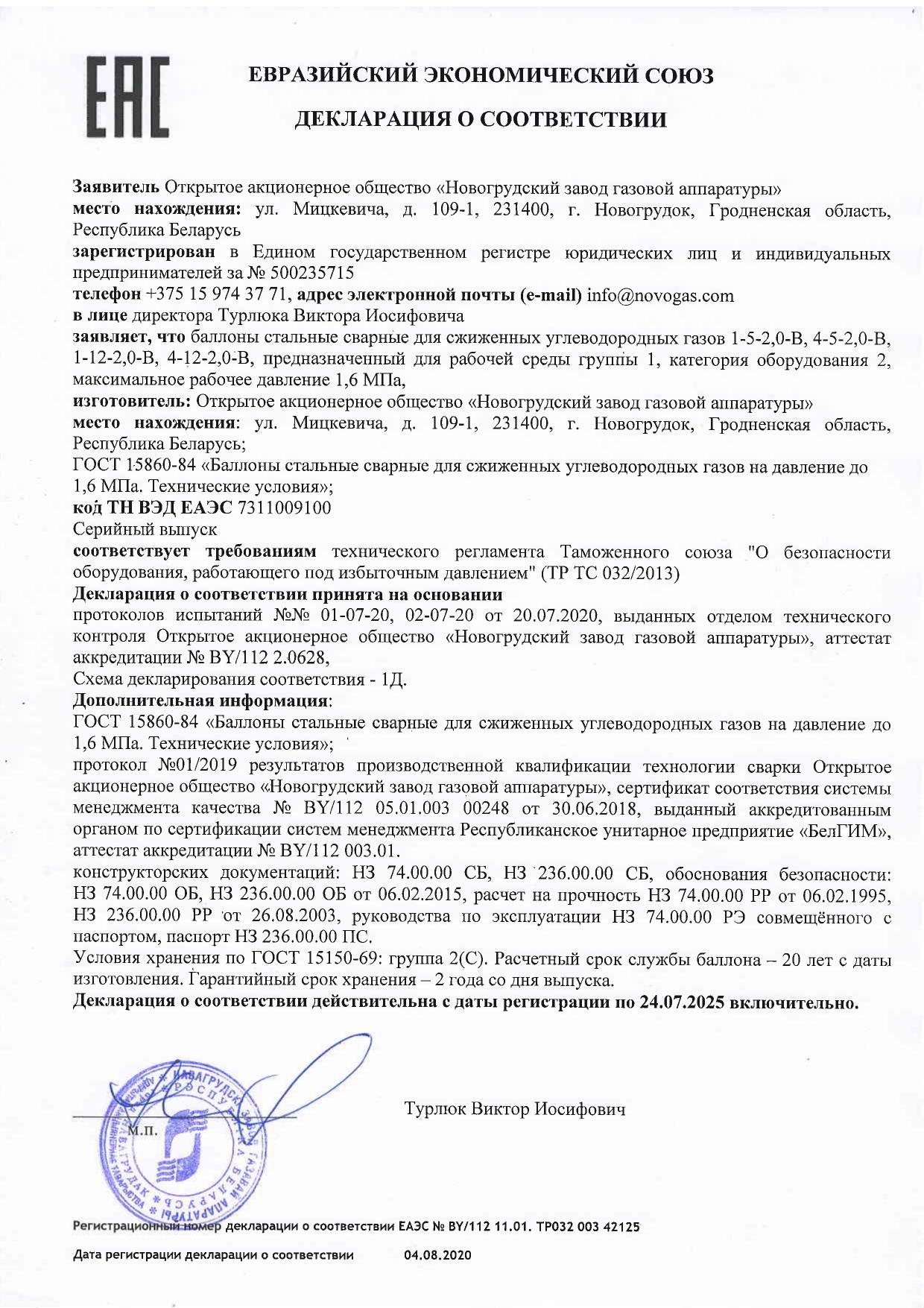 | Тип баллона: | Сварной |