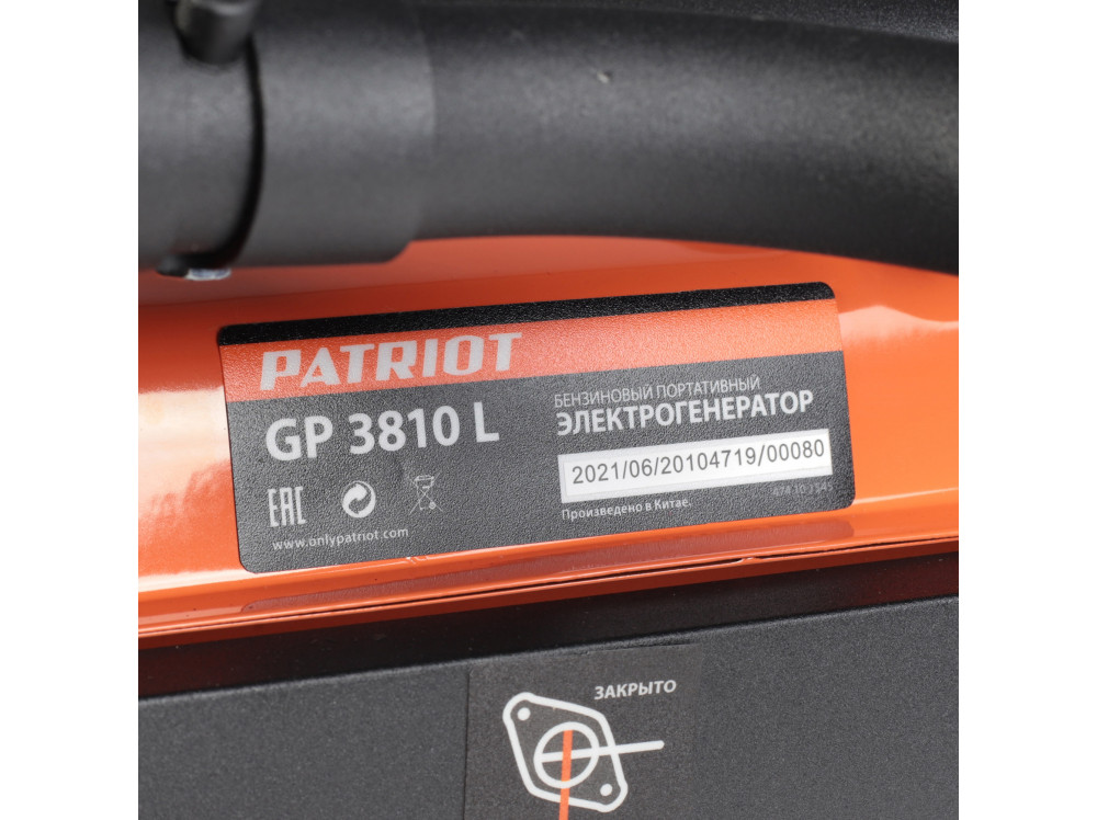 Генератор бензиновый однофазный PATRIOT GP 3810L