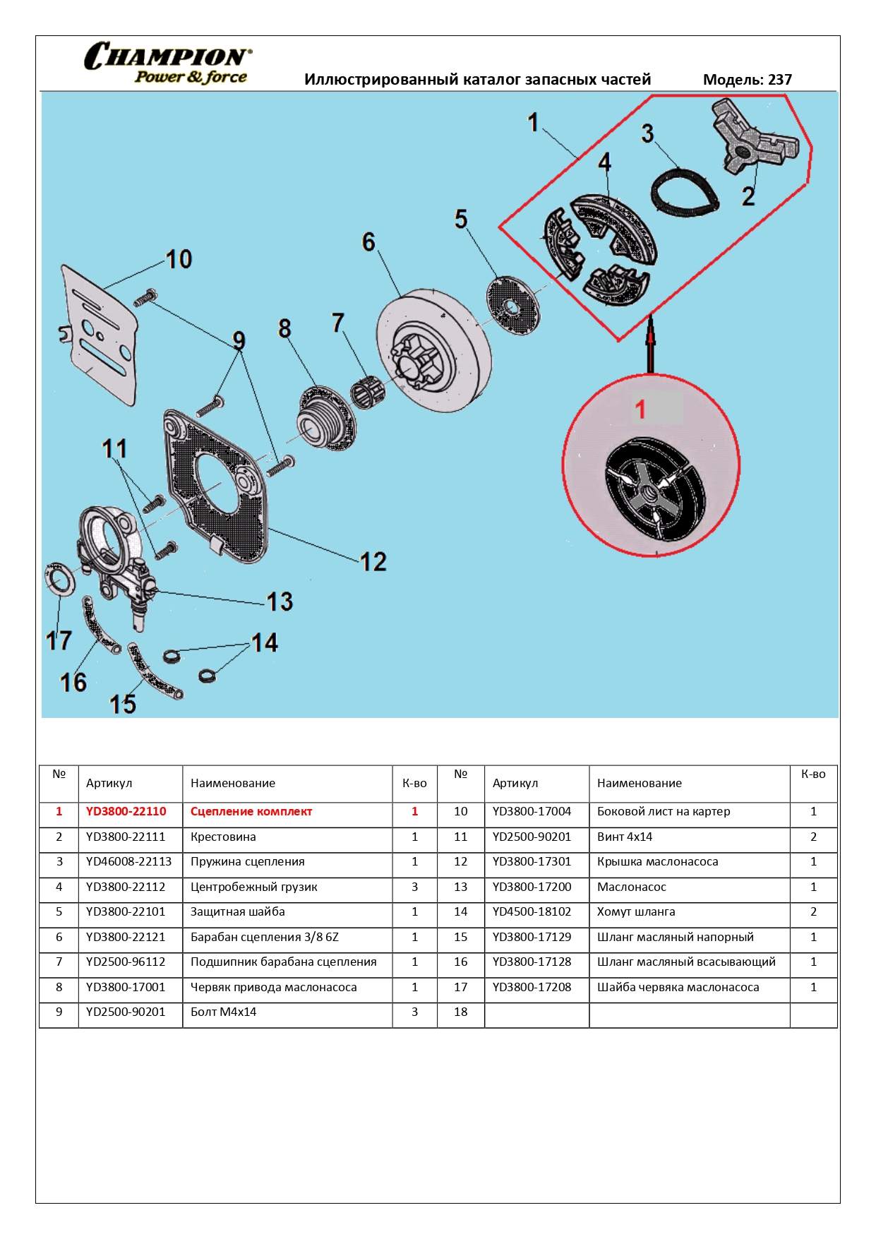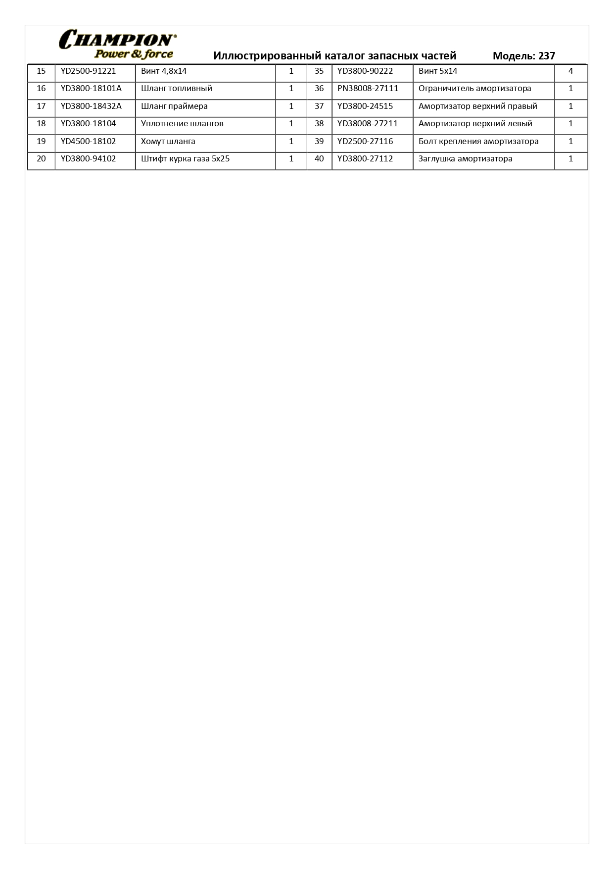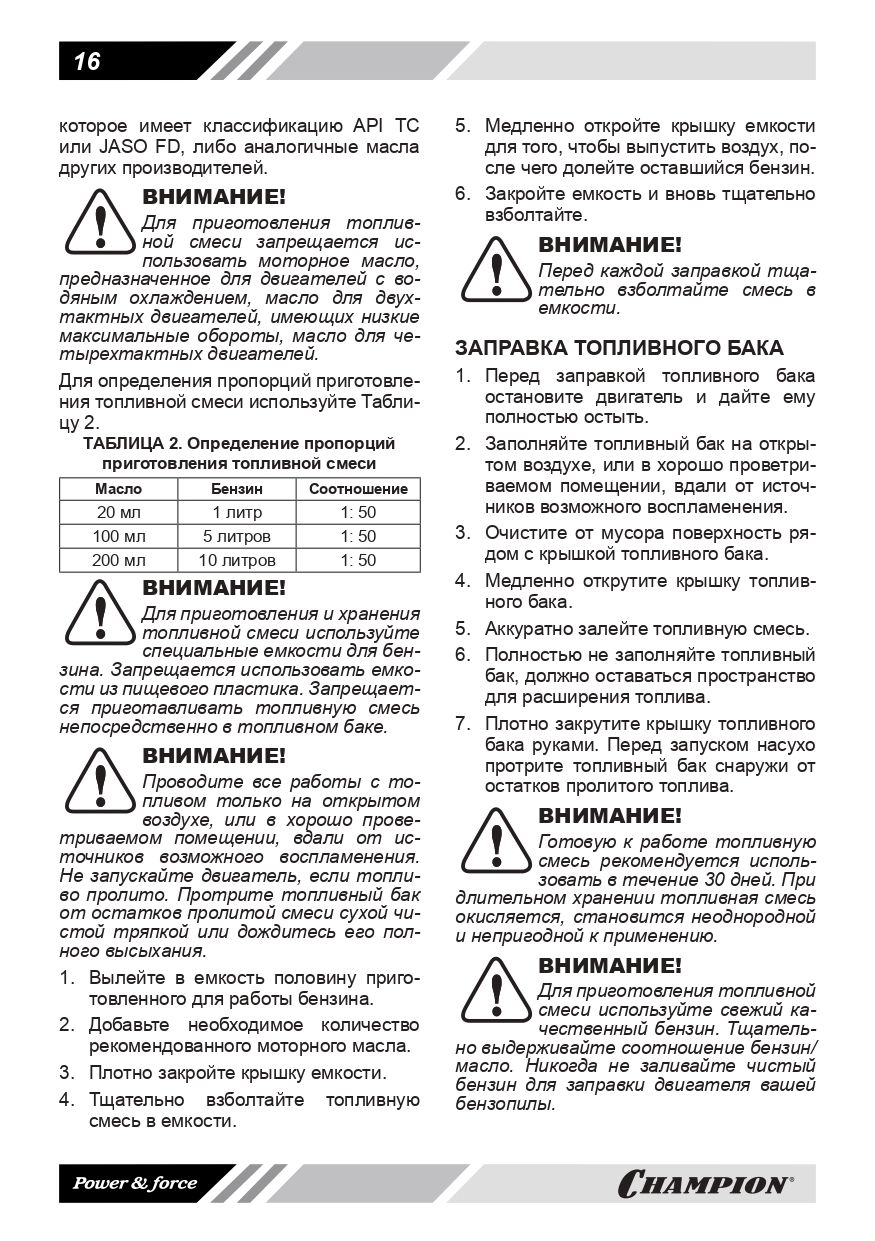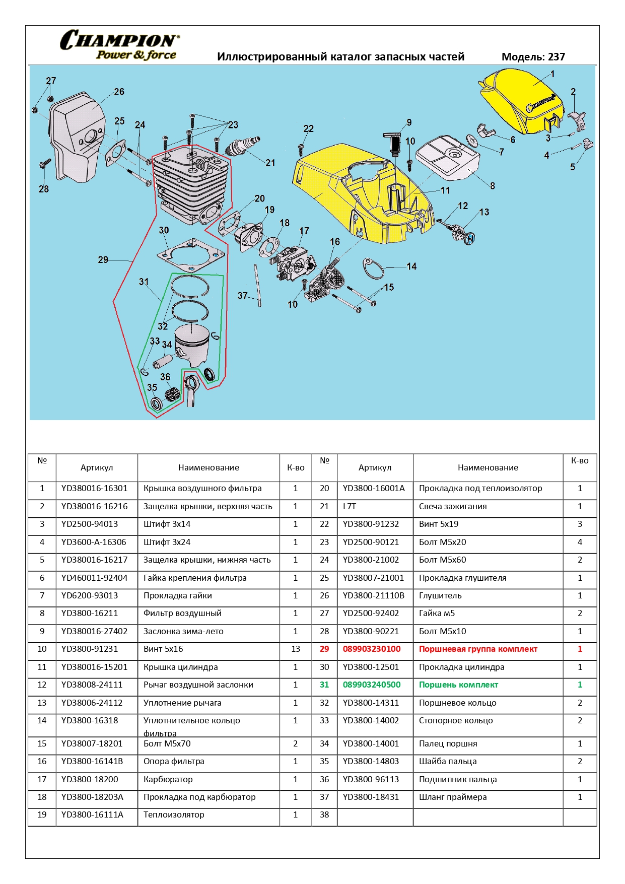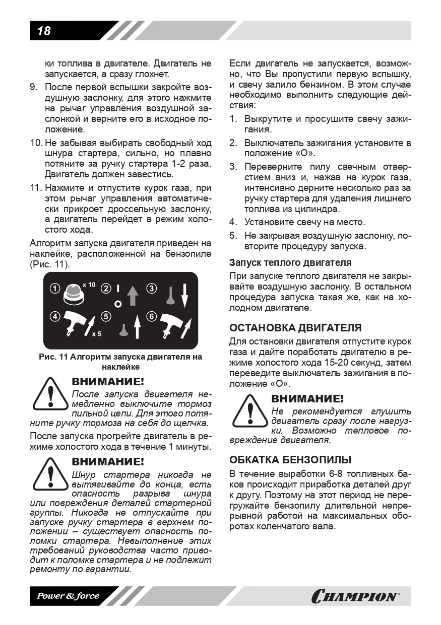 Бензопила Champion-237 предназначена для распила древесины.Относится к разряду пил, предназначенных для бытового применения. Двигатель 2-х тактный с воздушным охлаждением. Заправляется бензином АИ-92+ маслом для двухтактного двигателя.Рекомендуется смазывать цепь и шину маслом для снижения трения между ними, что увеличит срок службы пильной гарнитуры.