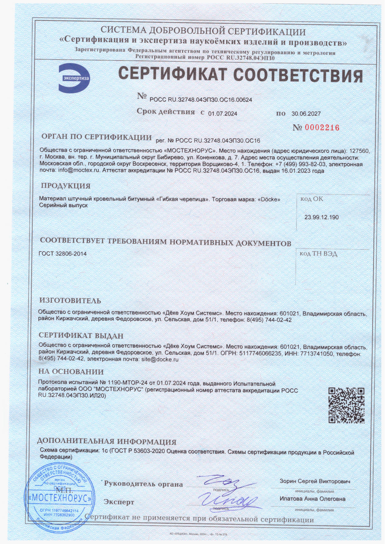 - долгий срок службы - гарантия на черепицу Docke Eurasia составляет 10 лет (при соблюдении требований по монтажу)