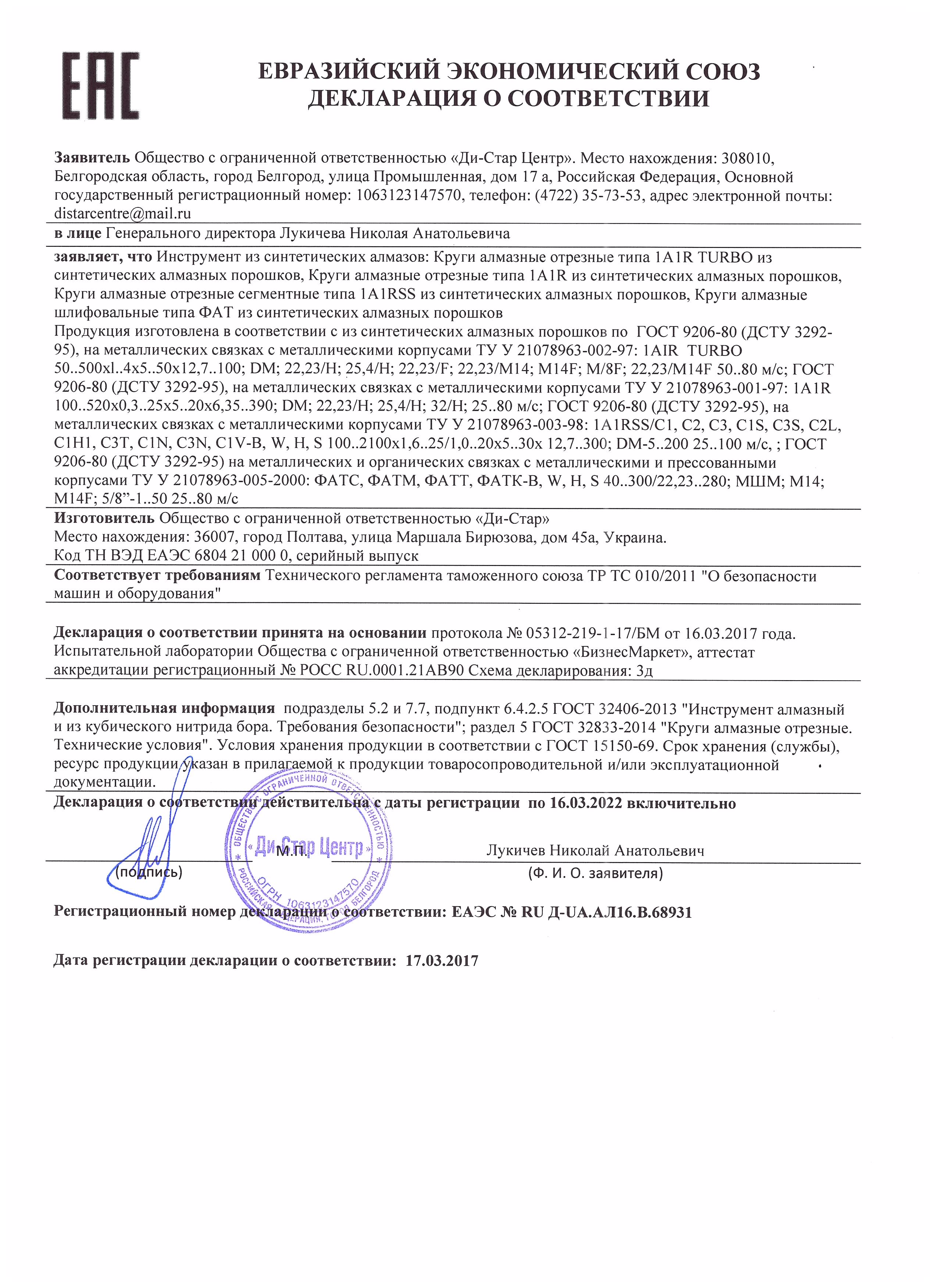 | Диаметр, мм | Посадка, мм | Сегмент, мм | Кол-во сегментов |