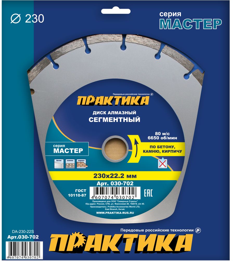| Диаметр, мм | Посадка, мм | Сегмент, мм | Кол-во сегментов |