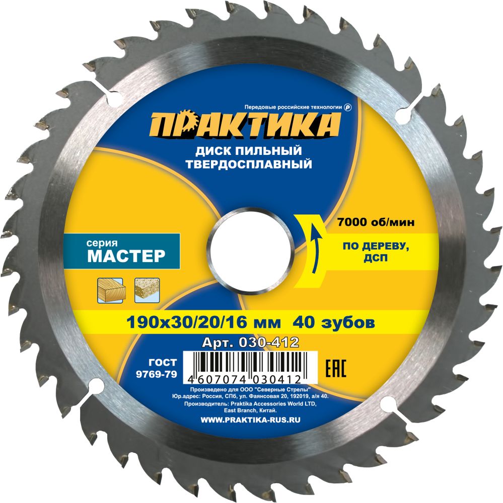 Диск пильный по дереву Практика 30/20/16 х 190 мм 40 зубцов