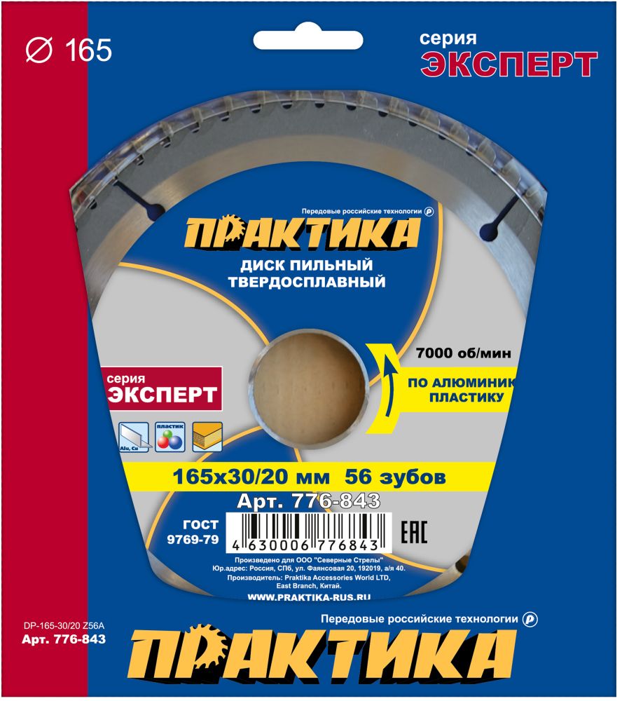 Диск пильный по ламинату и алюминию Практика 30/20 х 165 мм 56 зубцов