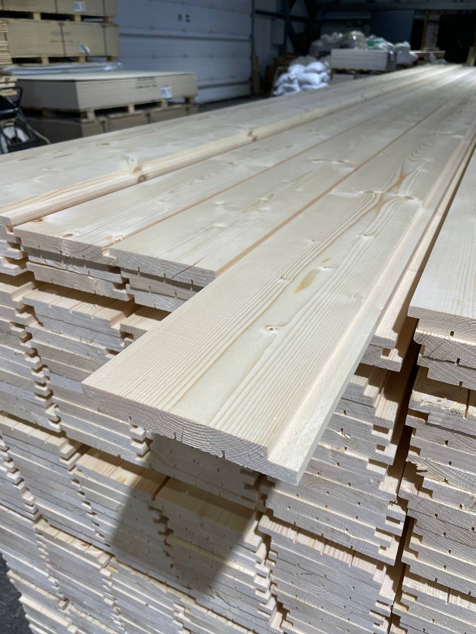 Пройдя камерную сушку, доска приобретает влажность, не превышающую 18%, что в дальнейшем гарантирует минимальную усадку материала. После строжки и фрезеровки доска приобретает правильные заданные геометрические размеры, гладкую поверхность, UYS (фальц) профиль создает широкую фаску, которая делает монтаж доски простым.