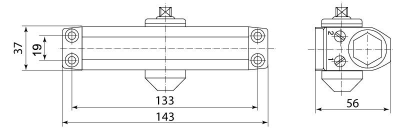 Дверной доводчик предназначен для легких дверей, таких как внутренние двери в офисах, торговых и технических помещениях.