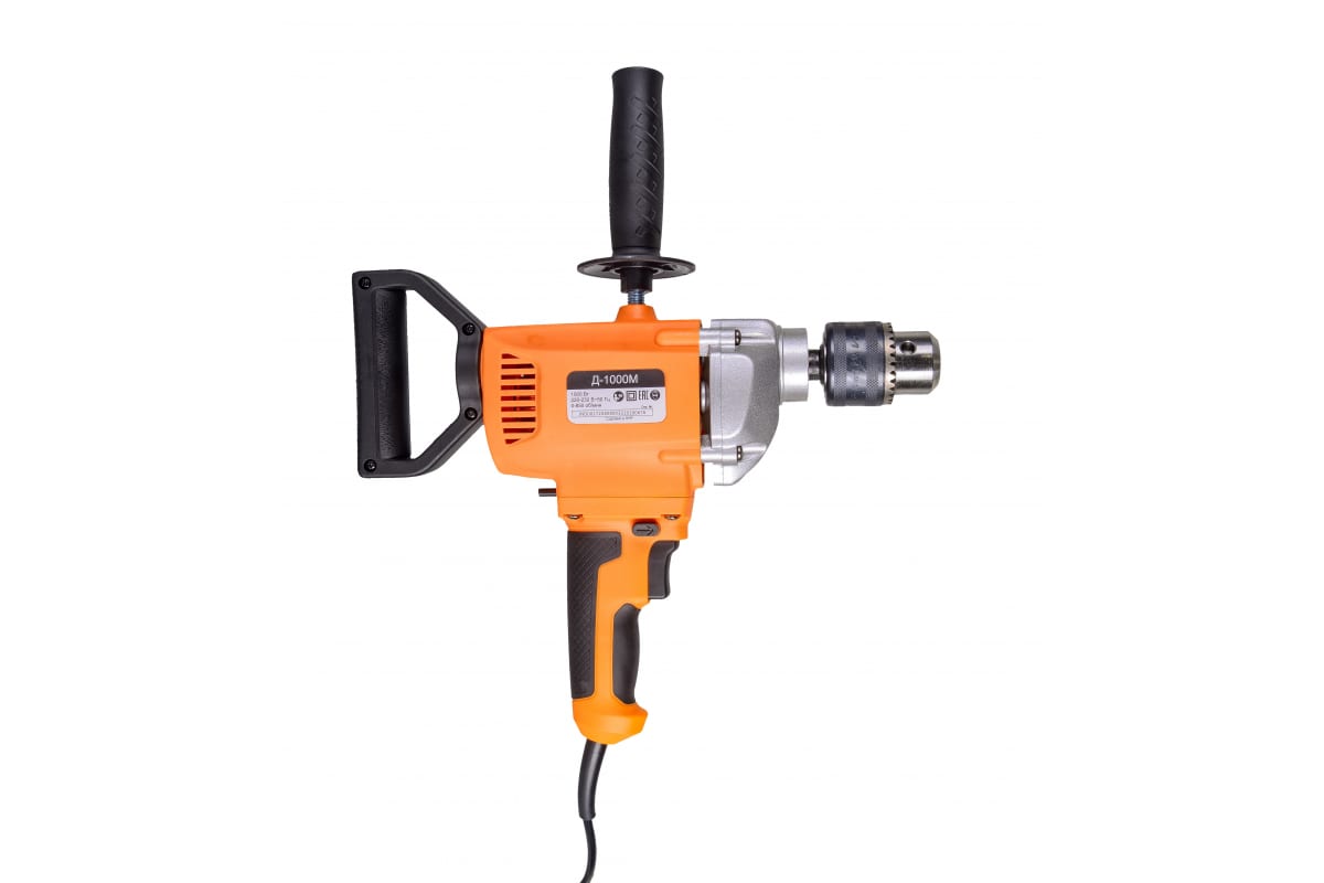 Дрель-миксер Д-1000М Вихрь - может заменить одновременно и дрель и миксер, так как может использоваться как и для сверления отверстий в различных конструкционных материалах (дерево, сталь, кирпич, легкий бетон и т. д) (при установке соответствующих сверл), так и для перемешивания лакокрасочных материалов (при установке соответствующей насадки).