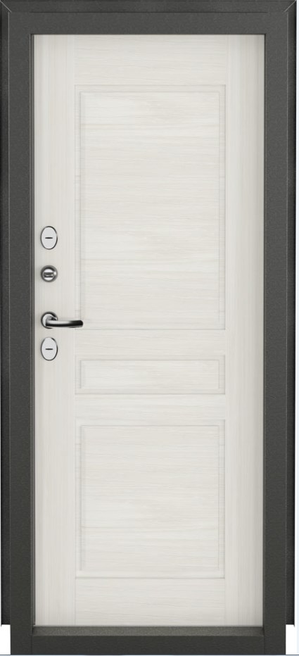 В комплектацию двери входят два замка: сувальдный замок Промет 30.11, соответствующий четвертому классу безопасности, а также алюминиевая дверная ручка Inspector 93 в хромированном исполнении.