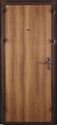 Эта дверь оснащена надежным цилиндровым замком Просам 3B4-31/55 второго класса и дверным глазком круглой формы для обеспечения дополнительной безопасности и функциональности. Комбинация дверной ручки, установленной на планке вместе с замком, и медного окраса придает двери эстетически привлекательный вид.