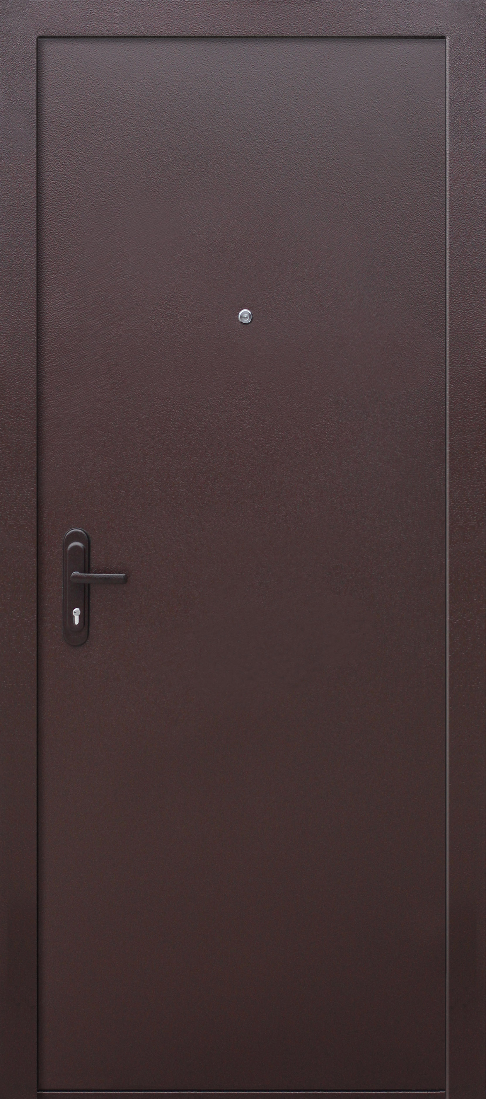 Световой проем 800 мм и 900 мм, что соответствует СНиП 2.09.04-87. В полотно встроен глазок широкого обзора в цвете «хром».