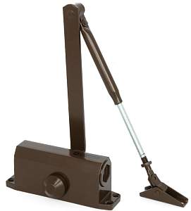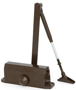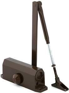 Дверные доводчики бывают накладными и скрытыми. Они обеспечивают автоматическое закрывание дверей и предотвращают быстрый износ петель, а также других элементов фурнитуры.