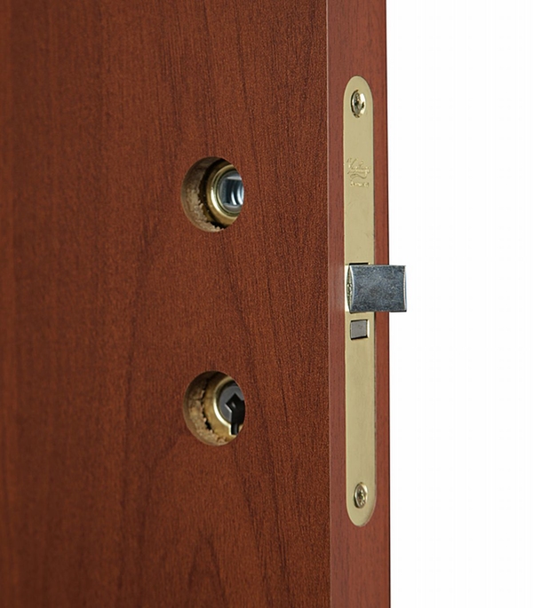 Конструкция: Дверное полотно толщиной 35мм, каркас выполнен из МДФ, сотовое картонное заполнение, поверхность - HDF-плита покрытая ламинированной пленкой. Полотно укомплектовано замком 2014. Вырезаны отверстия под ручку и завертку ( или заглушку) , врезаны втулки с винтом для крепления петель