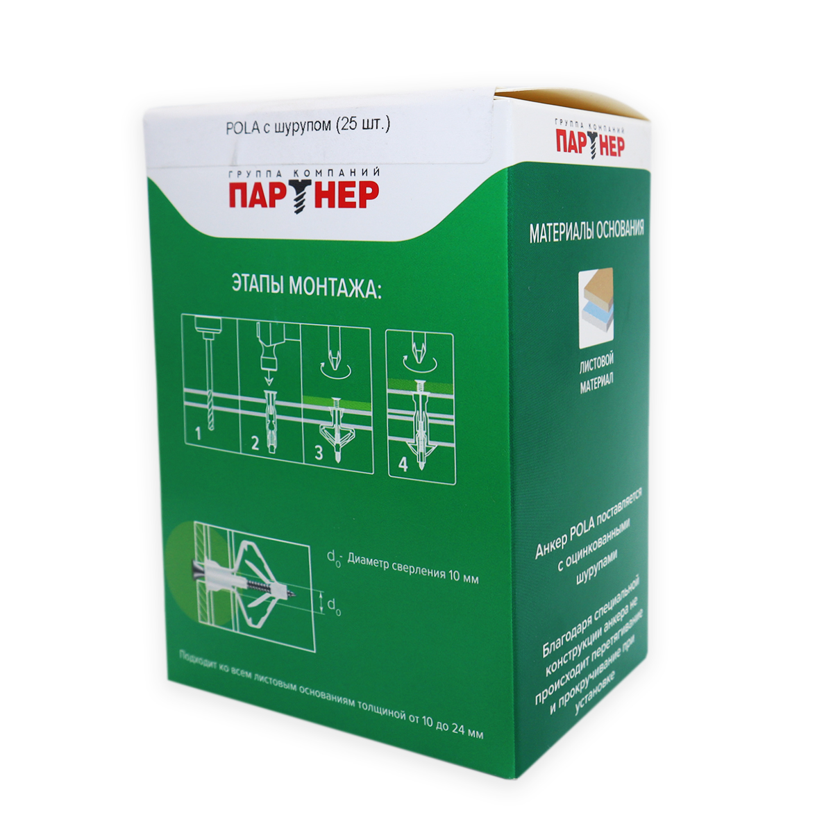 Анкер POLA для тонколистового материала, изготовлен из полиамида и подходит ко всем листовым основаниям толщиной от 10 до 24мм.