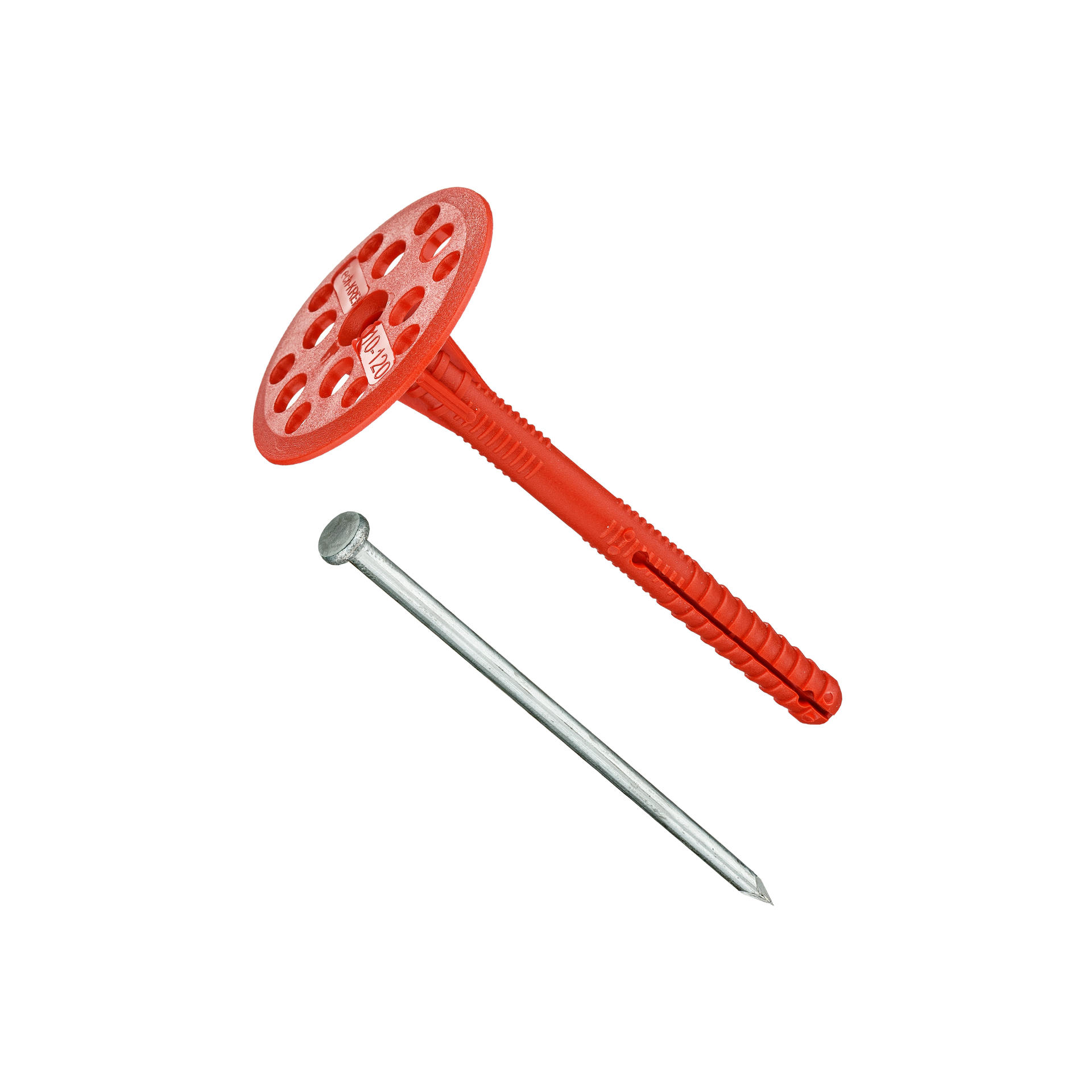 Дюбель для теплоизоляции 10х120мм с металлическим гвоздем применяется для крепления теплоизоляционных материалов максимальной толщиной 70мм к фасадам зданий.