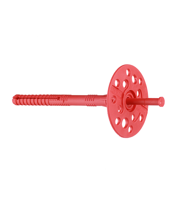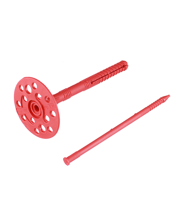 Дюбель для теплоизоляции 10х120мм с пластиковым гвоздем применяется для крепления легких теплоизоляционных материалов максимальной толщиной 70мм к фасадам зданий.