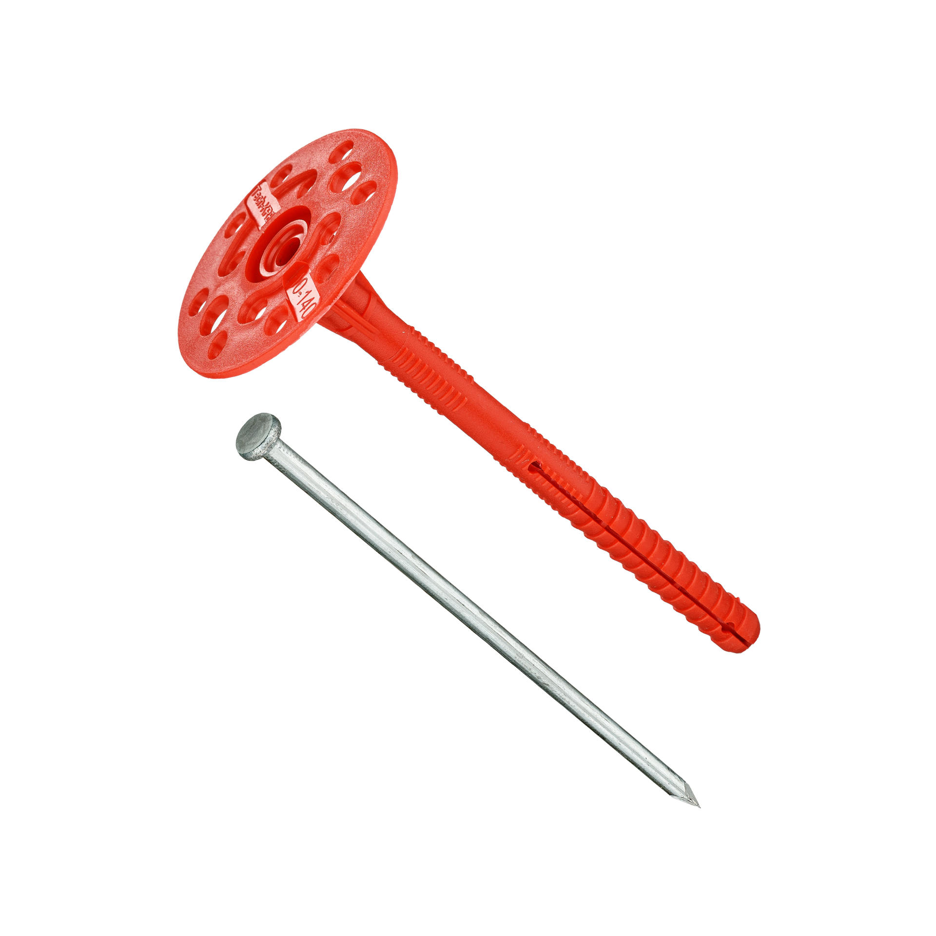 Дюбель для теплоизоляции 10х140мм с металлическим гвоздем применяется для крепления теплоизоляционных материалов максимальной толщиной 90мм к фасадам зданий.
