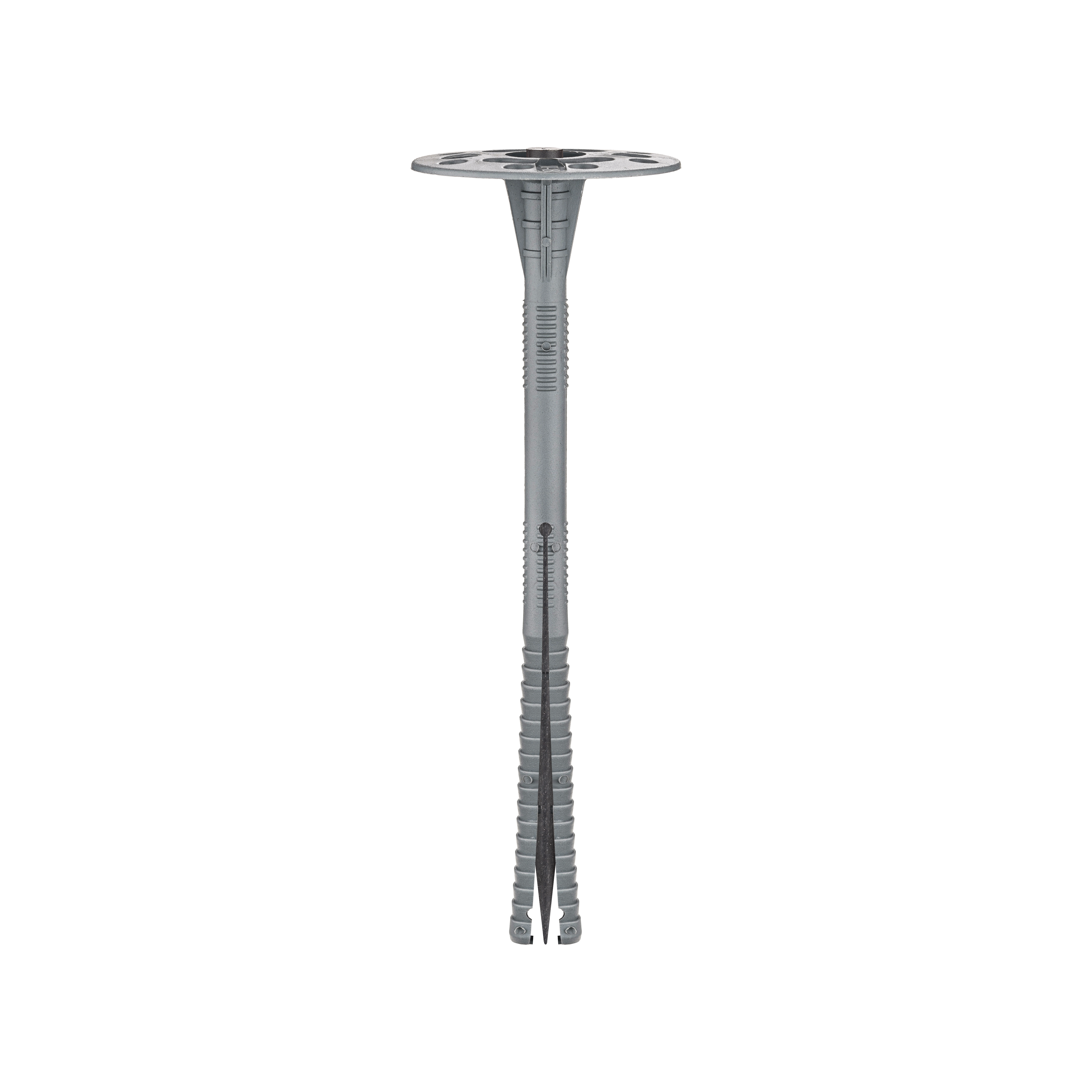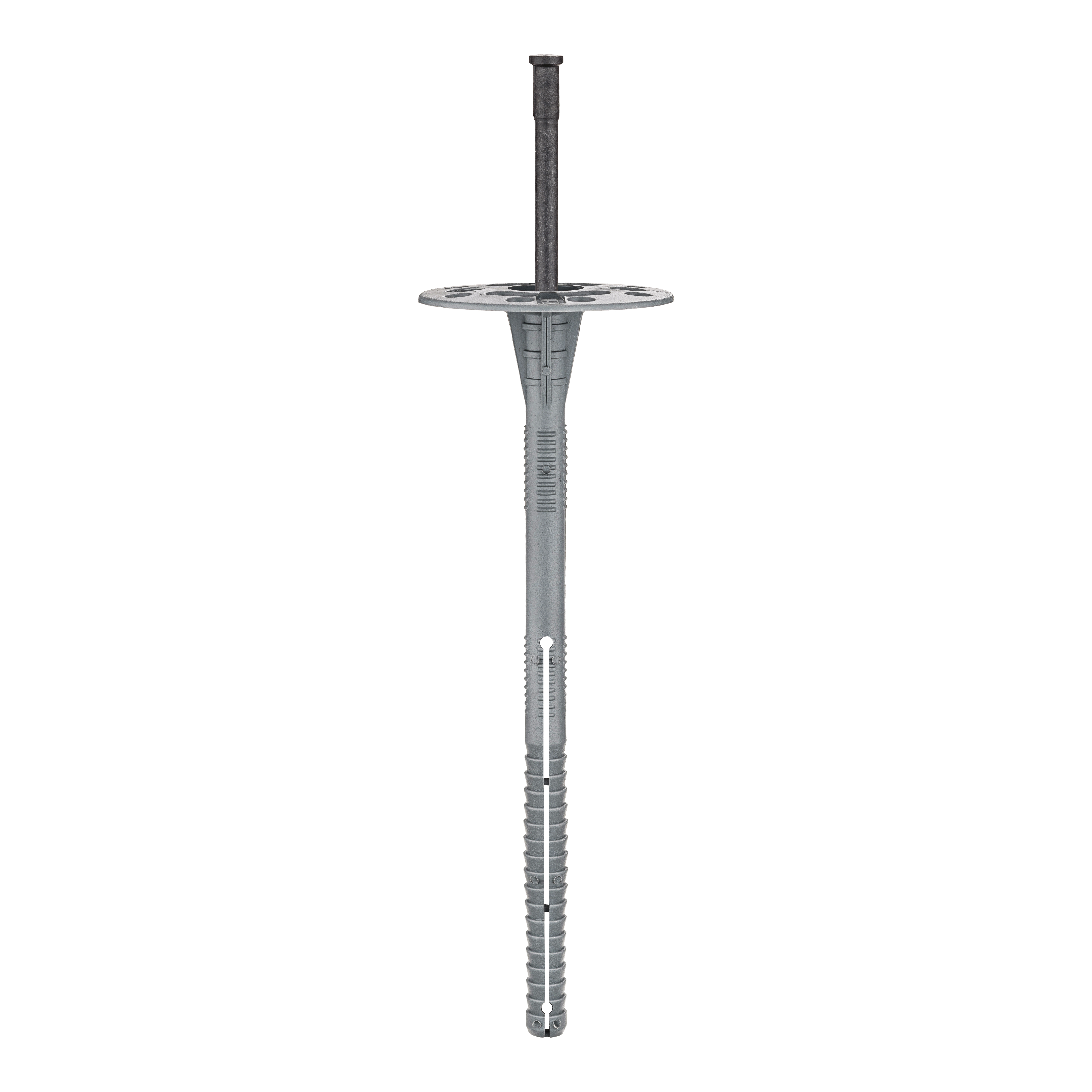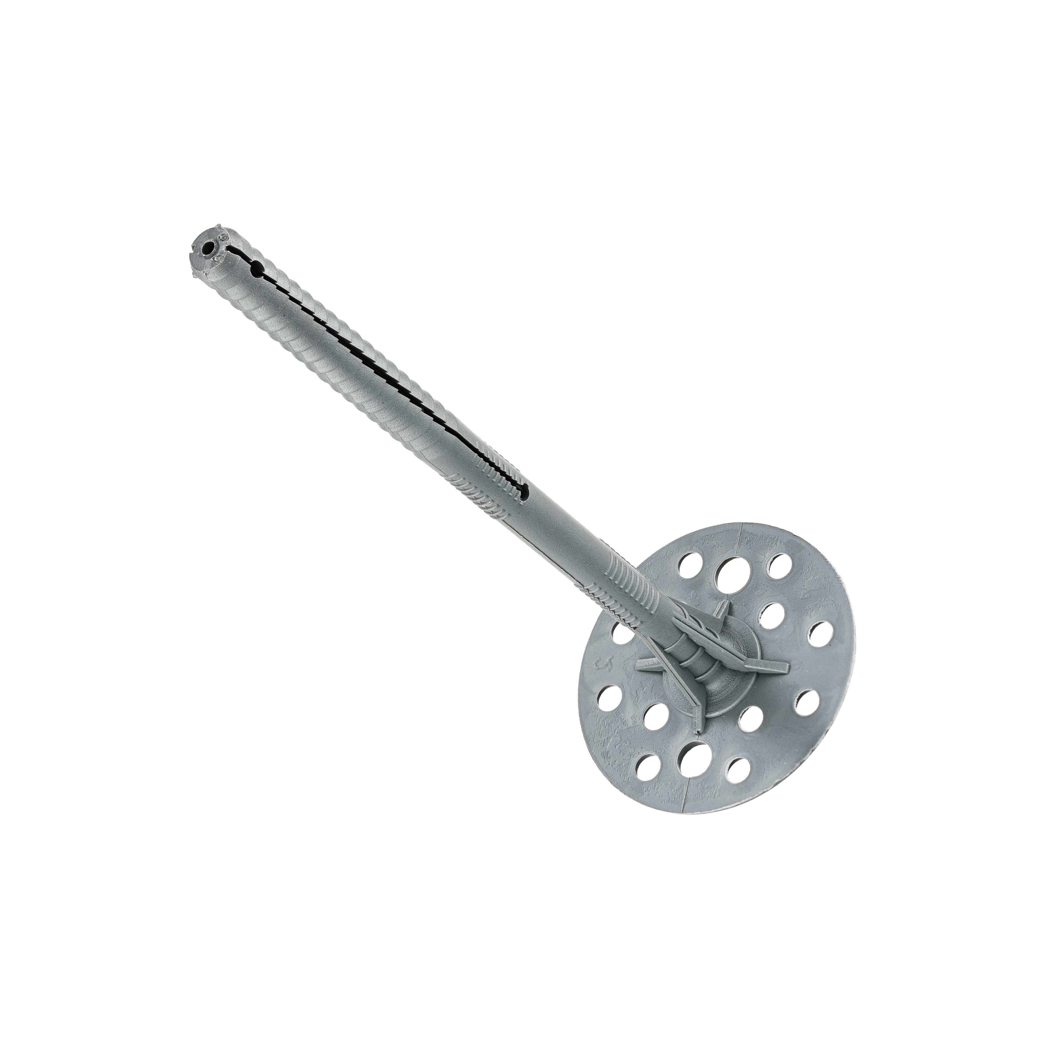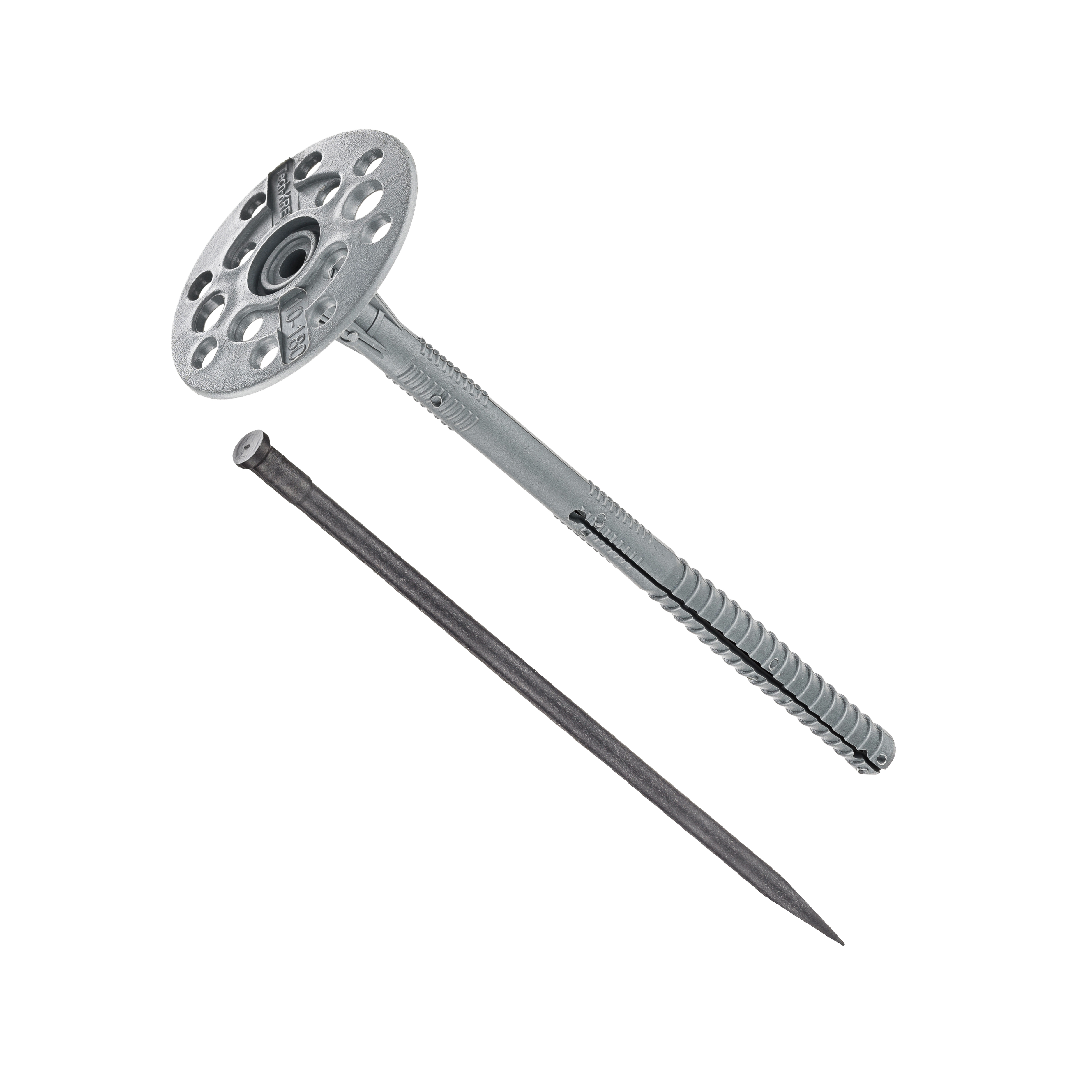 Дюбель для теплоизоляции 10х180мм с пластиковым гвоздем применяется для крепления легких теплоизоляционных материалов максимальной толщиной 130мм к фасадам зданий.