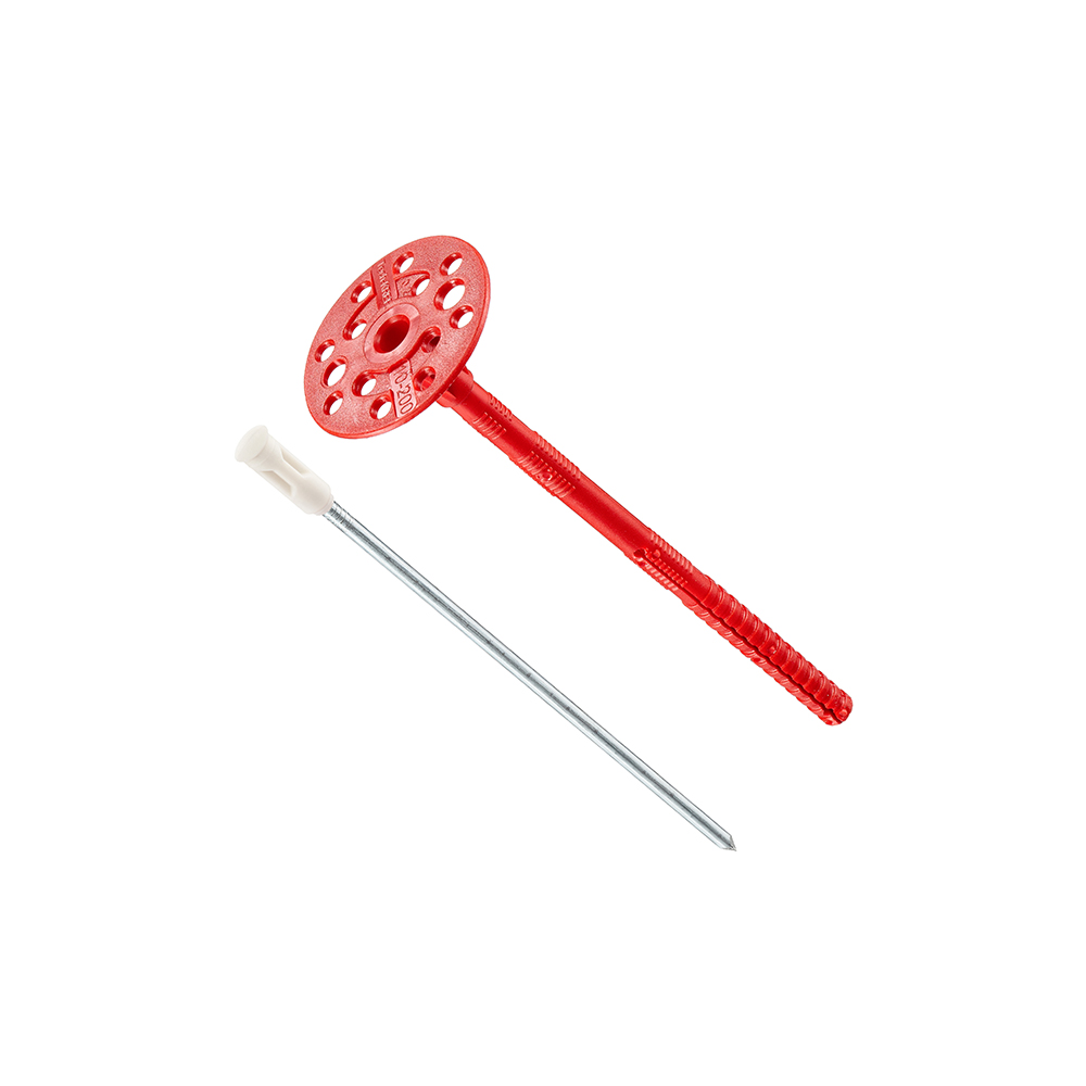 - Металлический оцинкованный гвоздь с термоголовкой, вбивается в распорный элемент, чтобы обеспечить плотную фиксацию. Пластиковый колпачок защищает от коррозии и предотвращает потерю тепла.