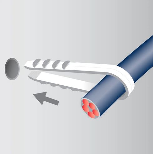 Дюбель-хомут выполнен из практичного, долговечного и гибкого нейлона. Этот материал обеспечивает надежную, плотную фиксацию и не поддается коррозии.