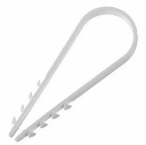 Дюбель-хомут для провода 5-8мм 100 шт/уп используется для крепления электрических, телефонных и сетевых проводов, кабелей, пучков кабелей, металлорукава, гофрорукава и т.д. диаметром 5-8мм.
