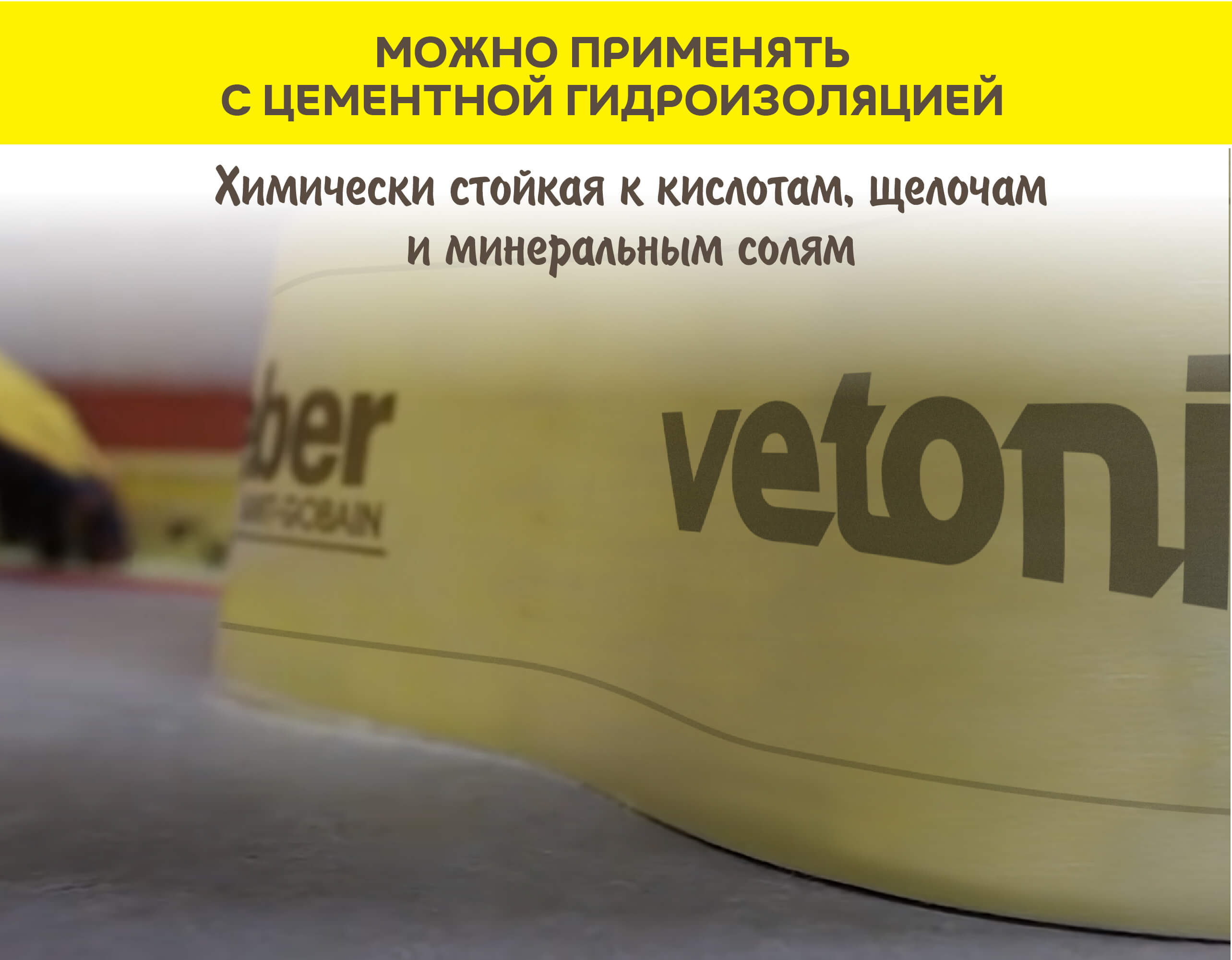 А также -для герметизации вертикальных (внешних и внутренних) и горизонтальных примыканий типа стена/стена, стена/пол, а также мест соединений разнородных материалов (дерево, металл, бетон, блоки из ячеистого бетона, ГКЛ, пазогребневые гипсовые плиты и пр.),для герметизации выхода труб, кабелей, в местах сливных колодцев и монтажных отверстий,для защиты подвалов, террас, балконов, а также мест, находящихся в постоянном контакте с водой: плавательных бассейнов, душевых и саун.