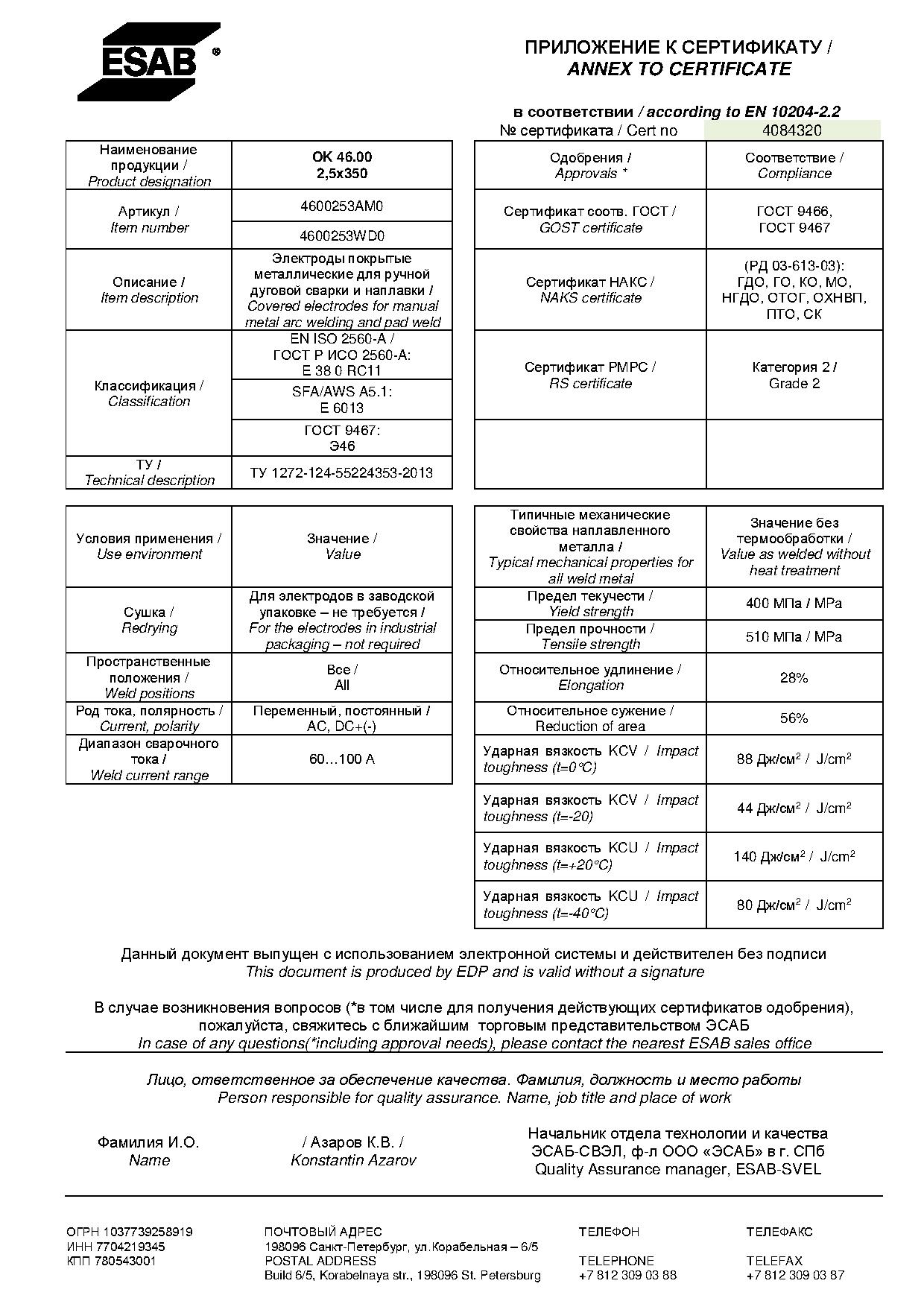 Ударная вязкость при -60°C — 50 Дж/см2.