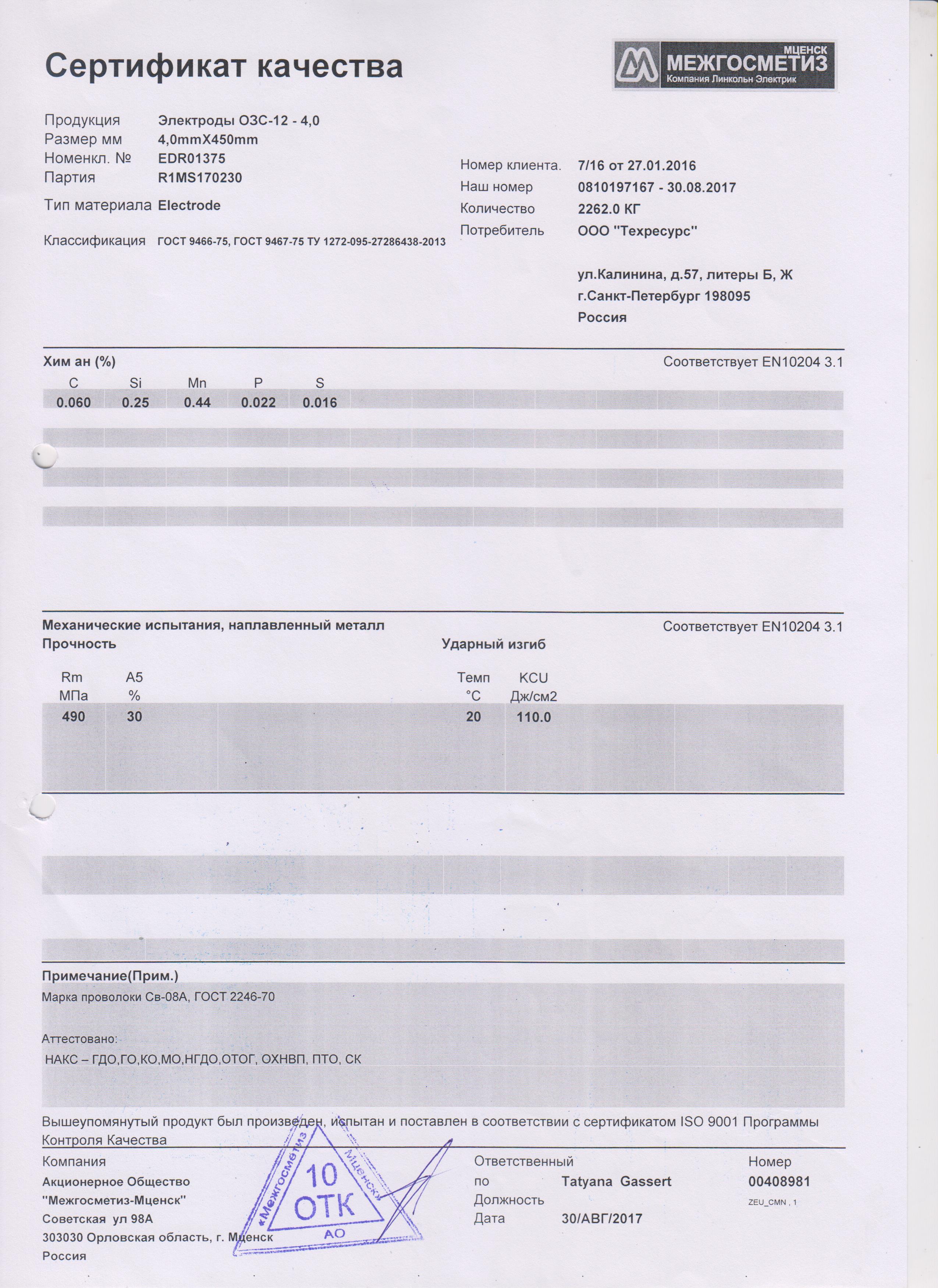Перед работой электроды необходимо прокалить при температуре ~+180°С в течение 1 часа. Расход электродов на 1 кг наплавленного металла – 1,65 кг.