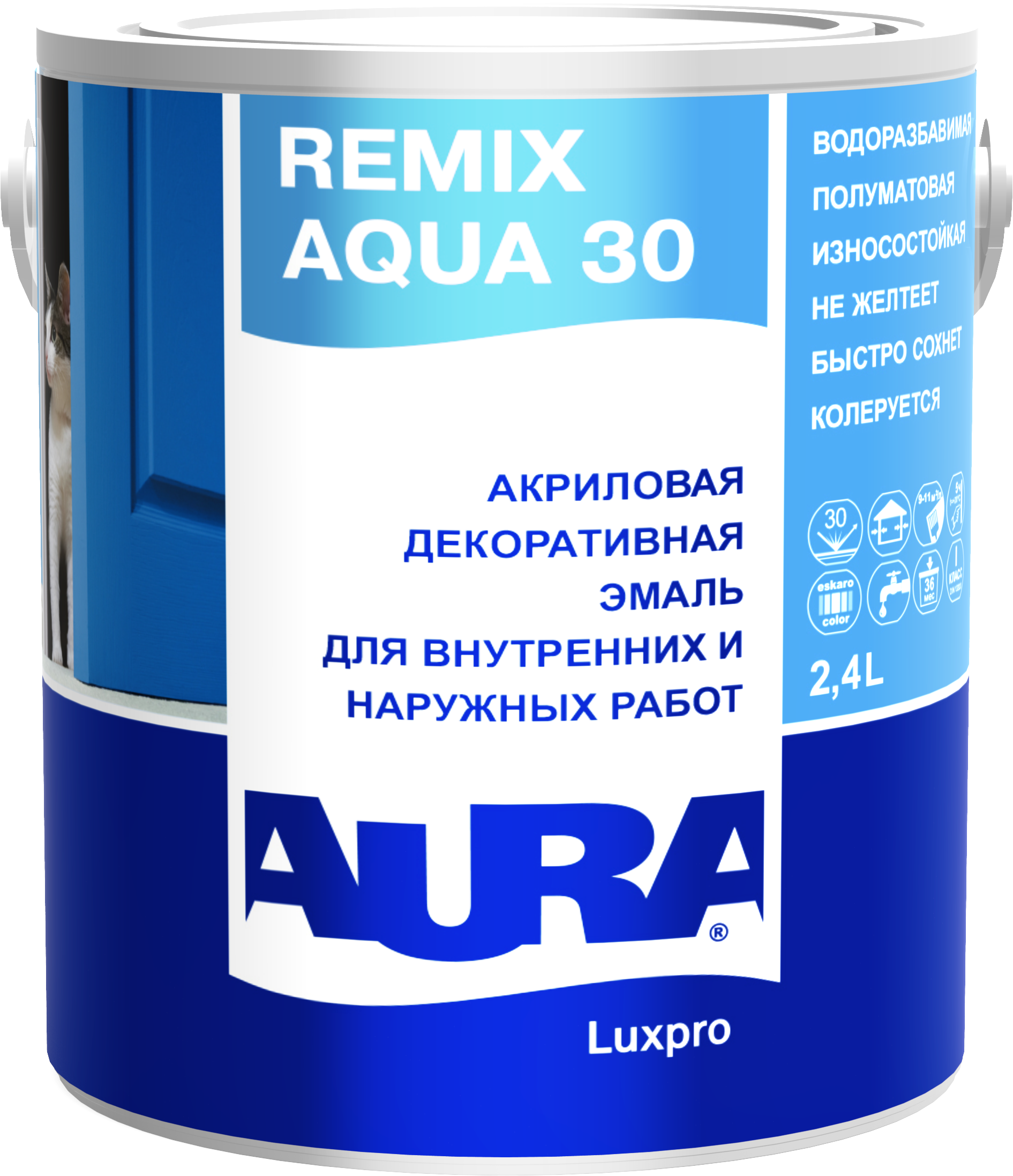 Эмаль акриловая Aura Luxpro Remix Aqua 30 база А белая 2,4л