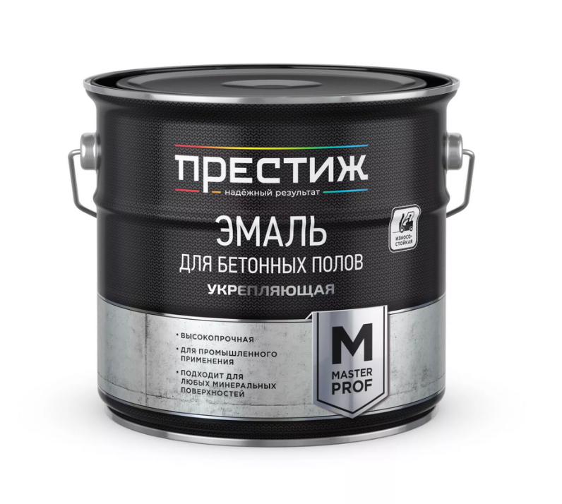 Износостойкая эмаль для бетонных полов предназначена для окрашивания бетонных полов и других минеральных подложек, а также помещений с повышенными механическими нагрузками (промышленные, торговые, складские помещения, гаражи, автомастерские, открытые парковки и т. д.). Высокая стойкость к химическим реагентам и износостойкость позволяют использовать ее для окраски бетонных поверхностей в цехах, лабораториях, парковках и авторемонтных мастерских. Выдерживает механические воздействия, возникающие при эксплуатации помещения (складские работы, движение автомобилей и погрузчиков, пешеходное движение, истирание и т. д.)
