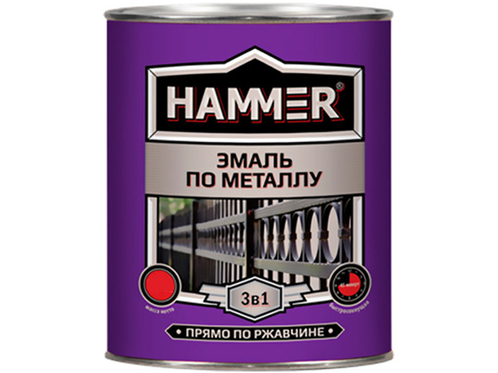 Эмаль по металлу Хаммер, предназначена для защиты и создания эффективного декоративного покрытия на стальных и чугунных поверхностях, в том числе покрытых ржавчиной, и остатками старого покрытия, плотно сцепленного с металлом: металлических конструкций,в том числе крупногабаритных, со сложным профилем, очистка которых затруднена (решетки, ограды, гаражи)